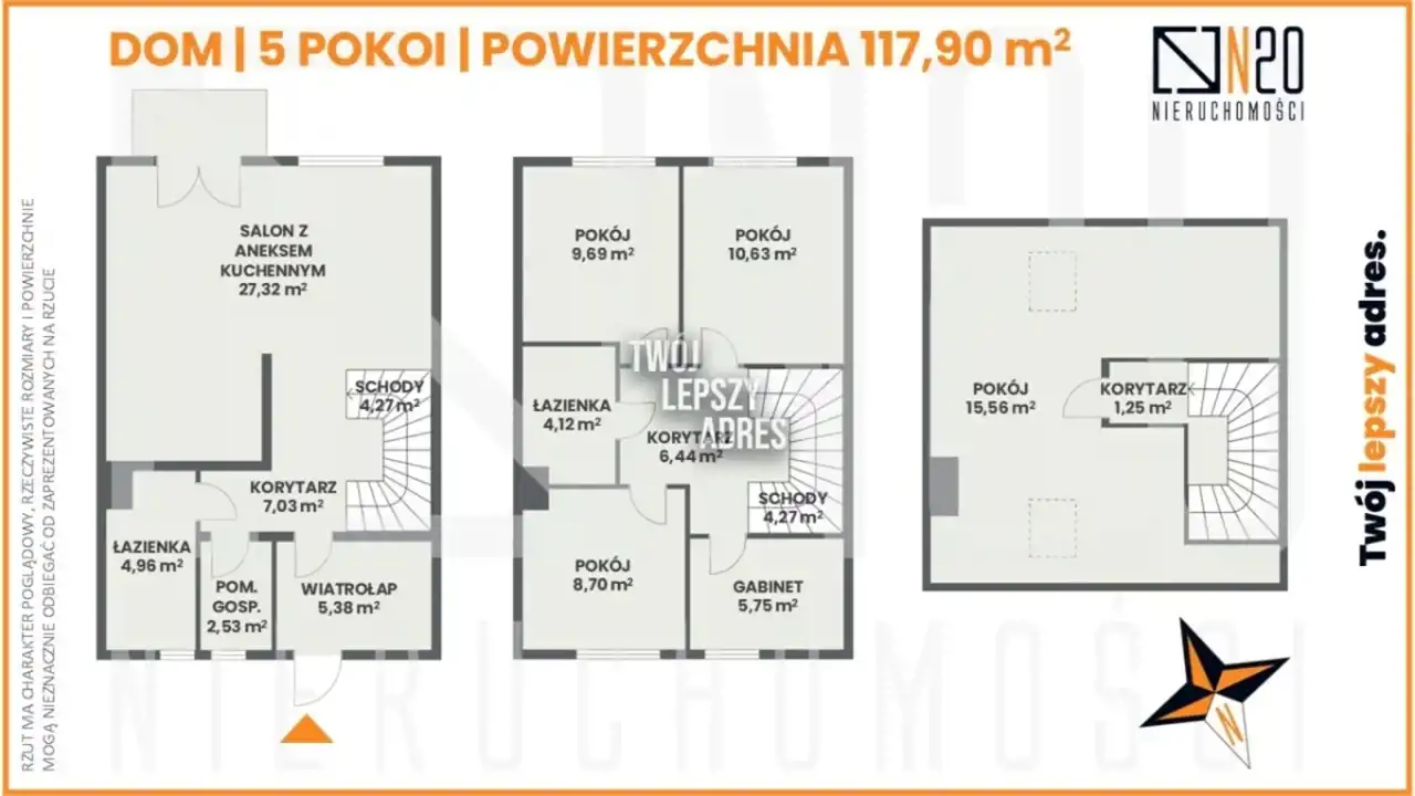 N20 Nieruchomości oferuje dom 3-kondygnacyjny (parter, piętro, poddasze użytkowe) w zabudowie szeregowej o powierzchni 118 m² z ogródkiem, położone w miejscowości Mała Wieś w powiecie wielickim w niedalekiej odległości od drogi nr DW964, która łączy na tym odcinku Wieliczkę oraz Niepołomice. Nieruchomość jest w stanie deweloperskim.