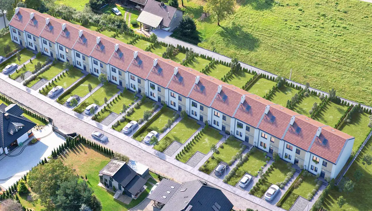- Każdy dom posiada indywidualne ogrodzenie – co daje poczucie prywatności.