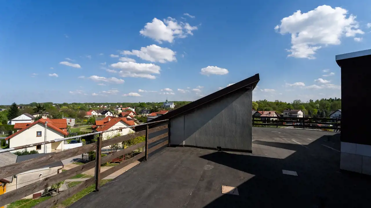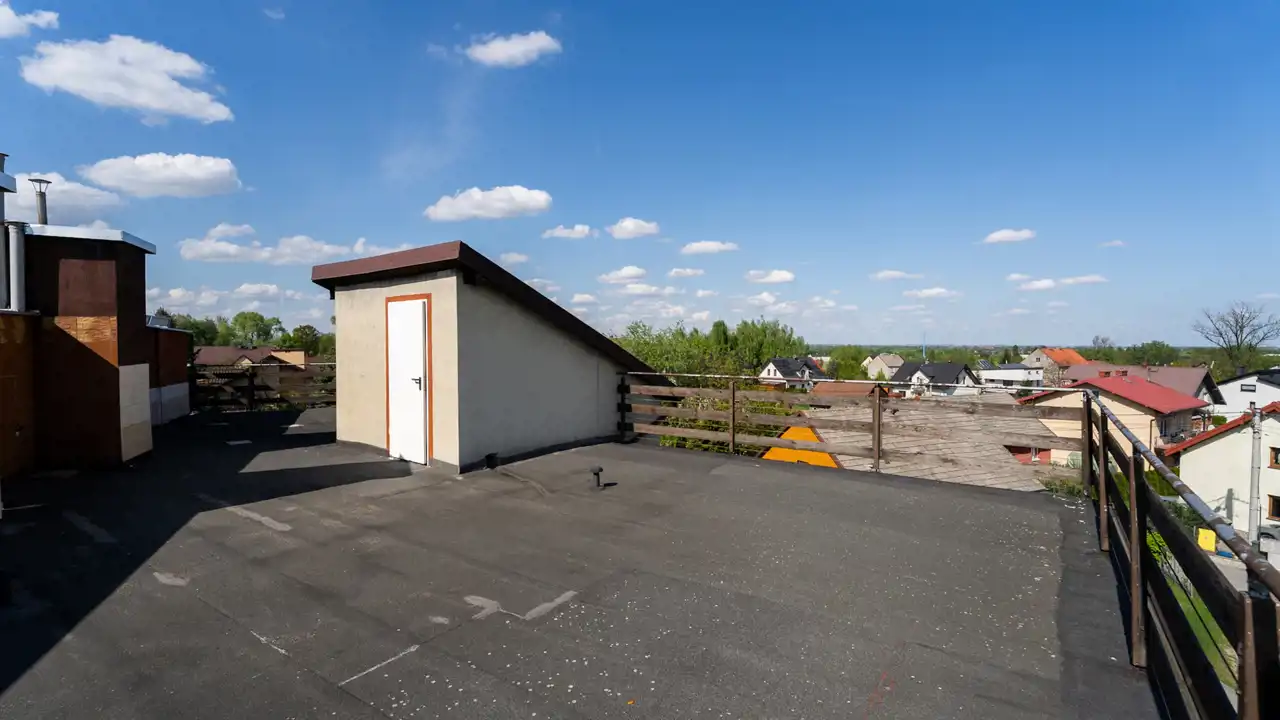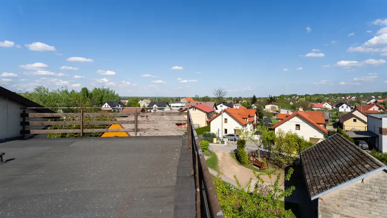 - płaski dach (do zagospodarowania np. taras, fotowoltaika itp.) z dachu piękny widok Panorama na okolice.