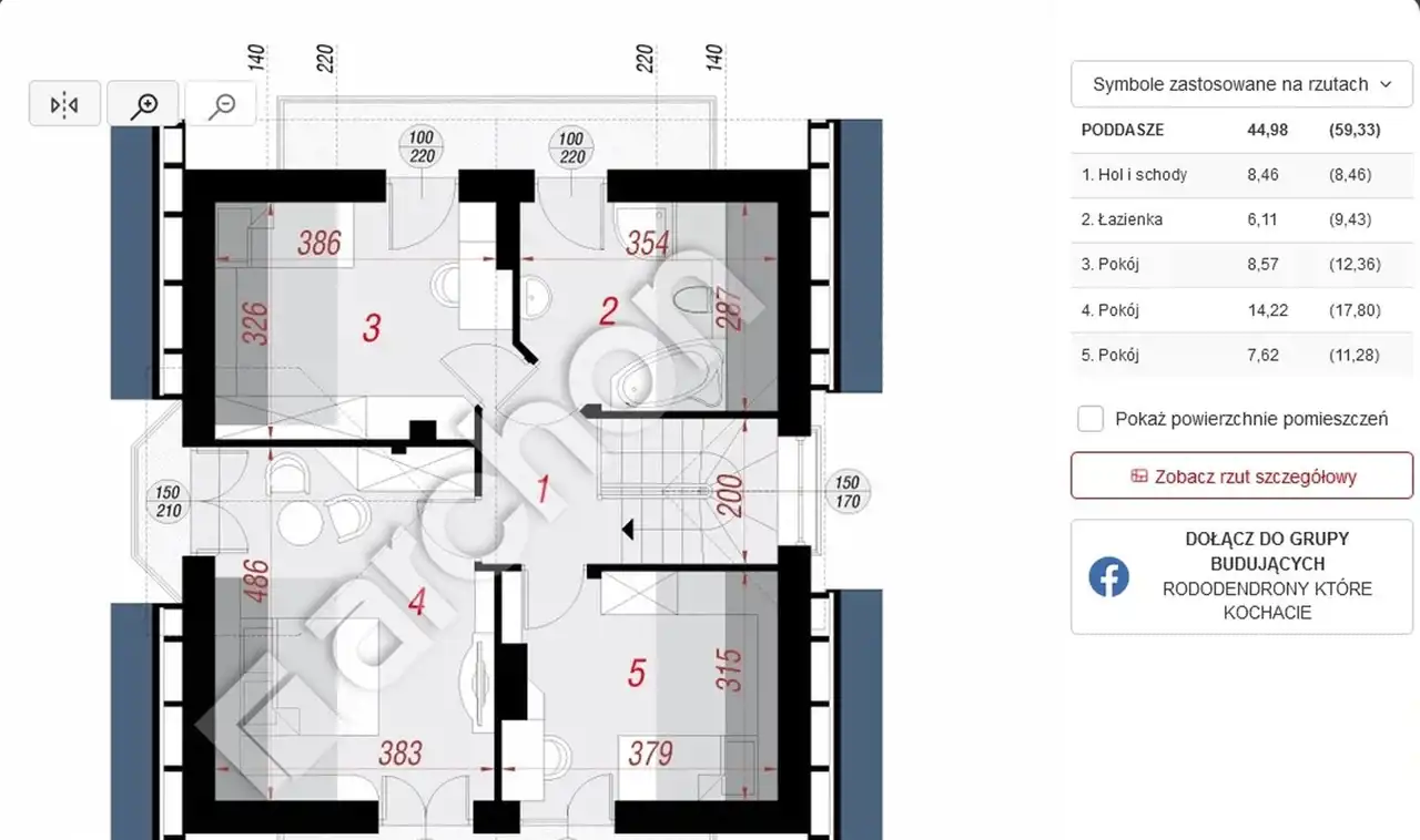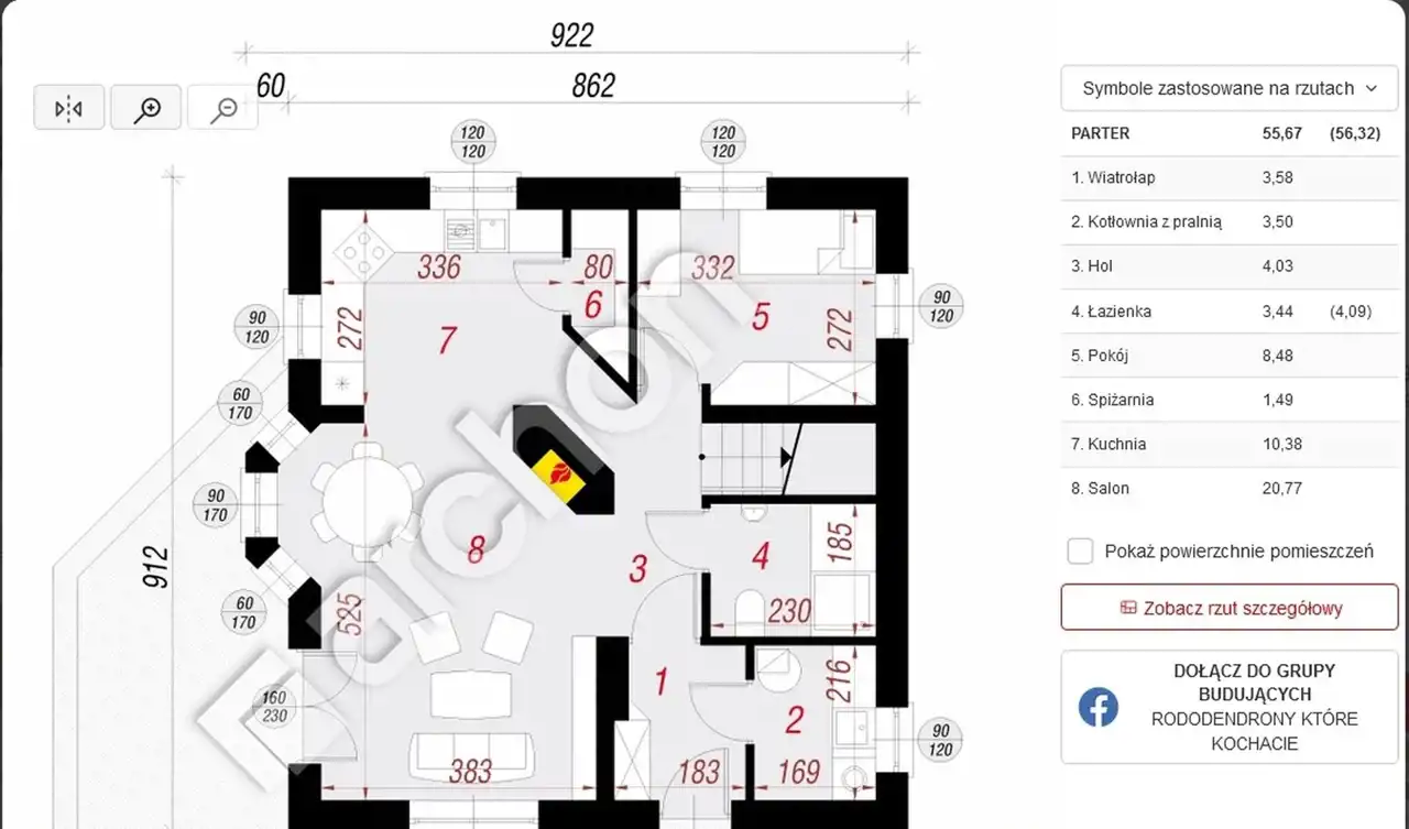 Dom wybudowany według projektu „Dom w Rododendronach 3” (Archon), o powierzchni całkowitej 242 m² oraz powierzchni użytkowej 164 m², usytuowany na widokowej działce o powierzchni 15 arów.