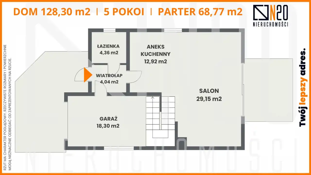 - Wiatrołap, z miejscem na szafę wnękową, zapewniający wygodne wejście do domu.