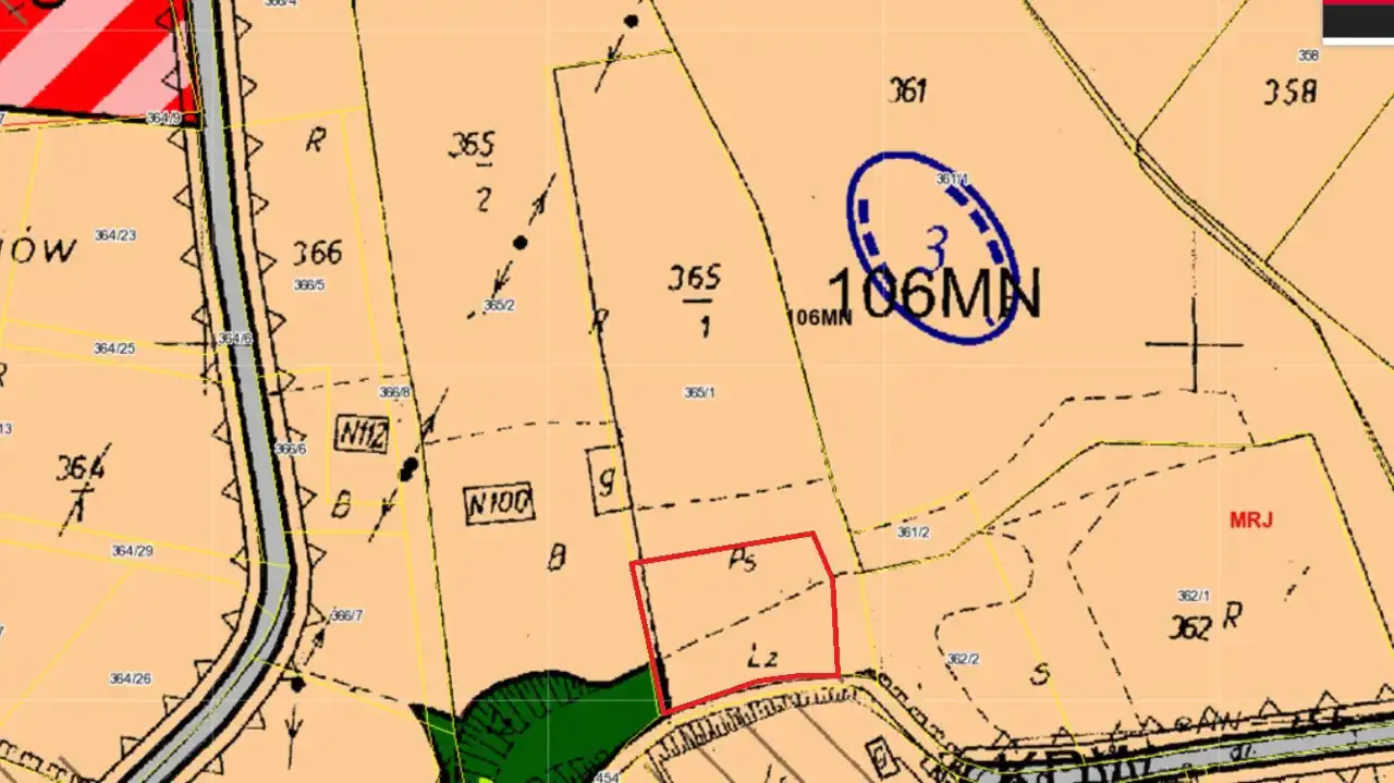 Działka w aktualnym planie zagospodarowania przestrzennego uchwalonego przez Radę Miejską w Wieliczce z dnia 10.11.2010 oznaczona jako 106MN czyli teren zabudowy mieszkaniowej jednorodzinnej, z podstawowym przeznaczeniem: zabudowa mieszkaniowa jednorodzinna, wolnostojąca i bliźniacza, z możliwością wydzielenia w budynku mieszkalnym lokalu na cele usługowe, zgodnie z przepisami odrębnymi. Wskaźnik dopuszczalnej powierzchni zainwestowania nie może przekroczyć 30%; wskaźnik terenu biologicznie czynnego, nie może być niższy niż 70%;. Maksymalna wysokość: 11 m dla budynków mieszkaniowych, usługowych i inwentarskich. Dachy dwuspadowe i wielospadowe, o nachyleniu połaci od 35˚ do 45˚.
