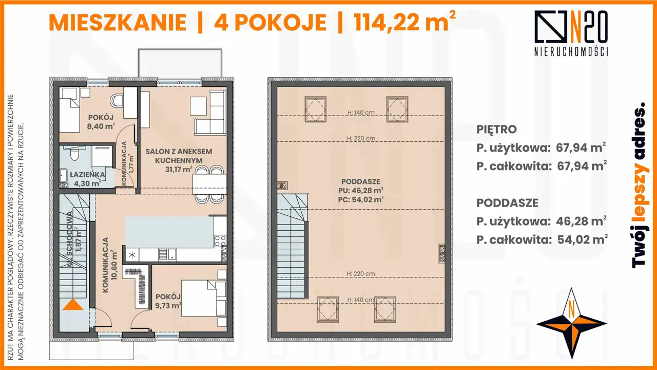 - poddasze - 46,28 m2 powierzchni użytkowej