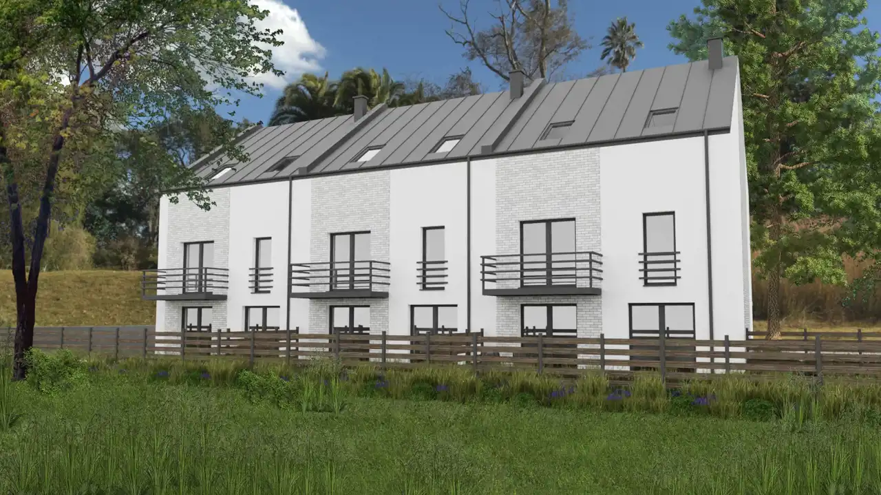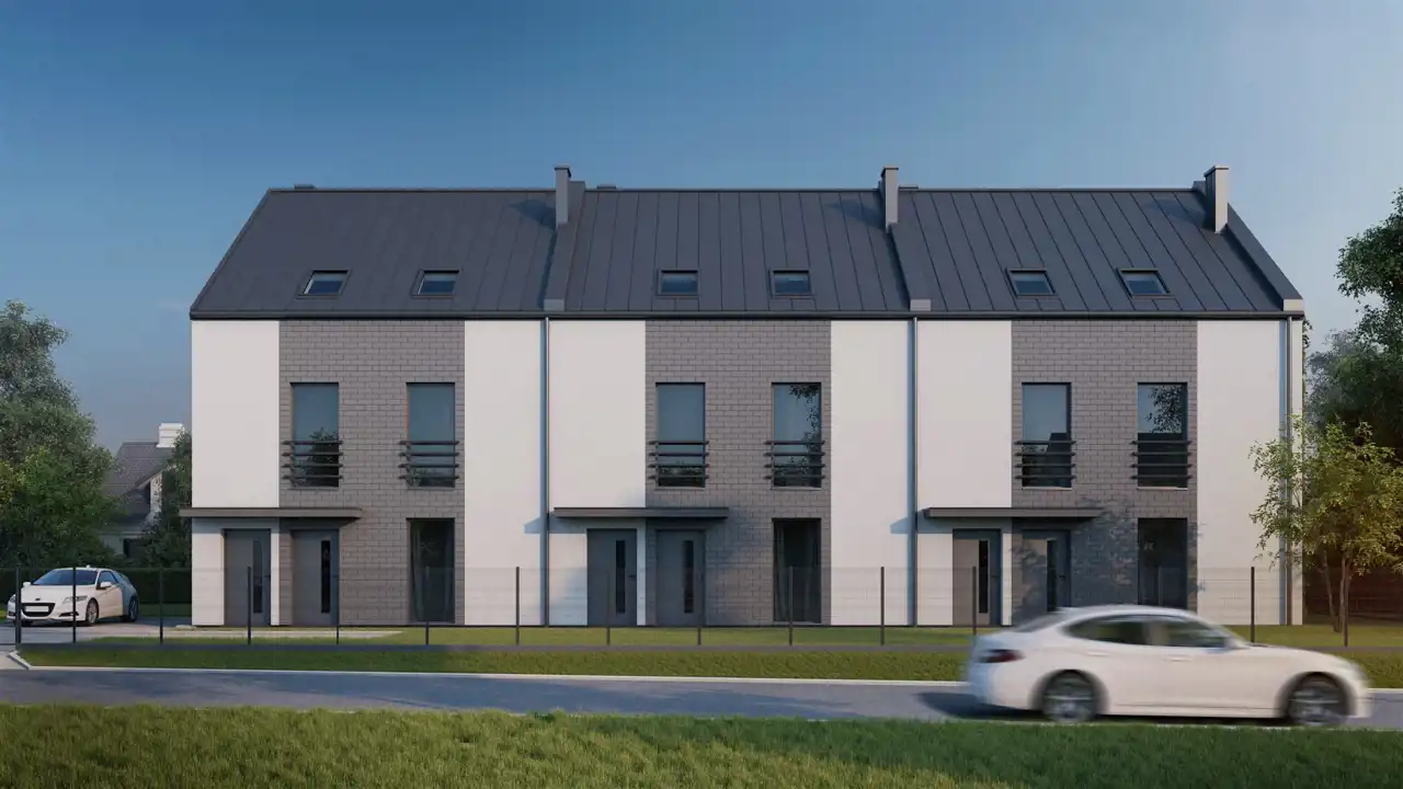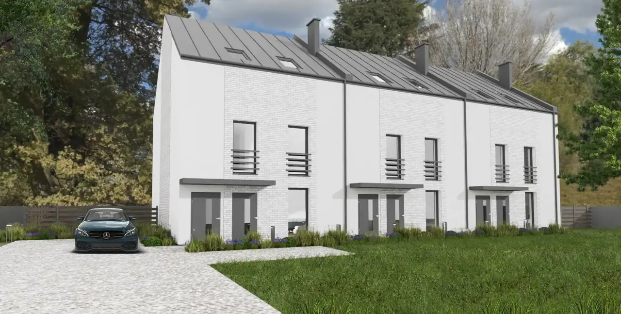 Prezentowana inwestycja to budynek w zabudowie szeregowej, mieszczący w sobie 6 mieszkania z niezależnymi wejściami. Mieszkania na parterach posiadają własne ogródki o powierzchni ok 100 m2 i środkowy segment 40 m2. Do mieszkań na piętrze przynależą balkon i poddasze. Do każdego mieszkania przypisane jest miejsce postojowe w cenie.