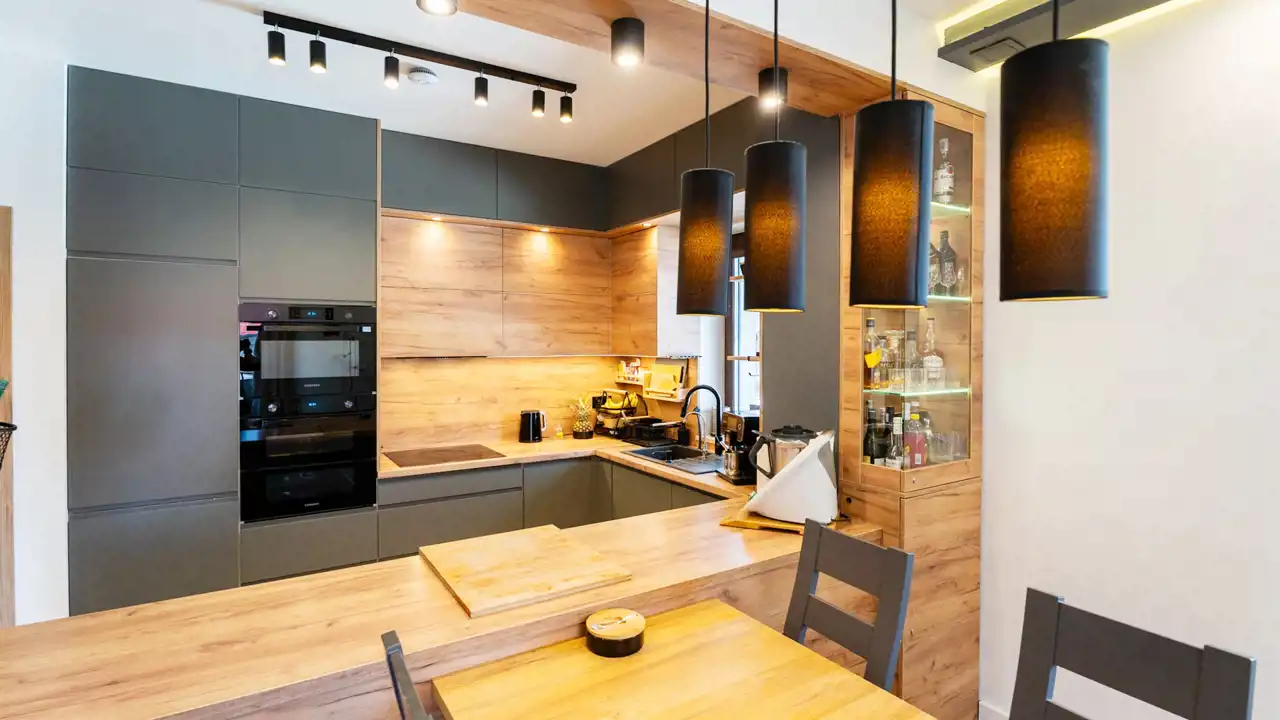 W pełni wyposażona kuchnia z zabudową na wymiar – funkcjonalność i estetyka w jednym