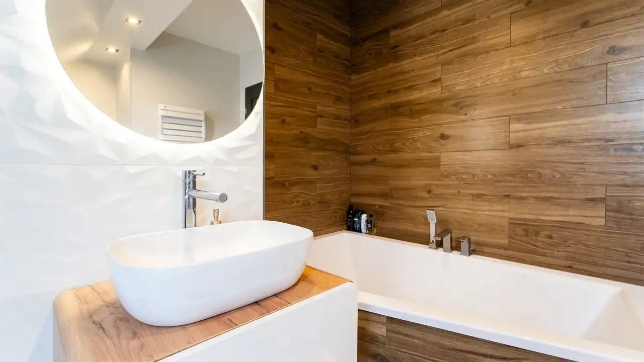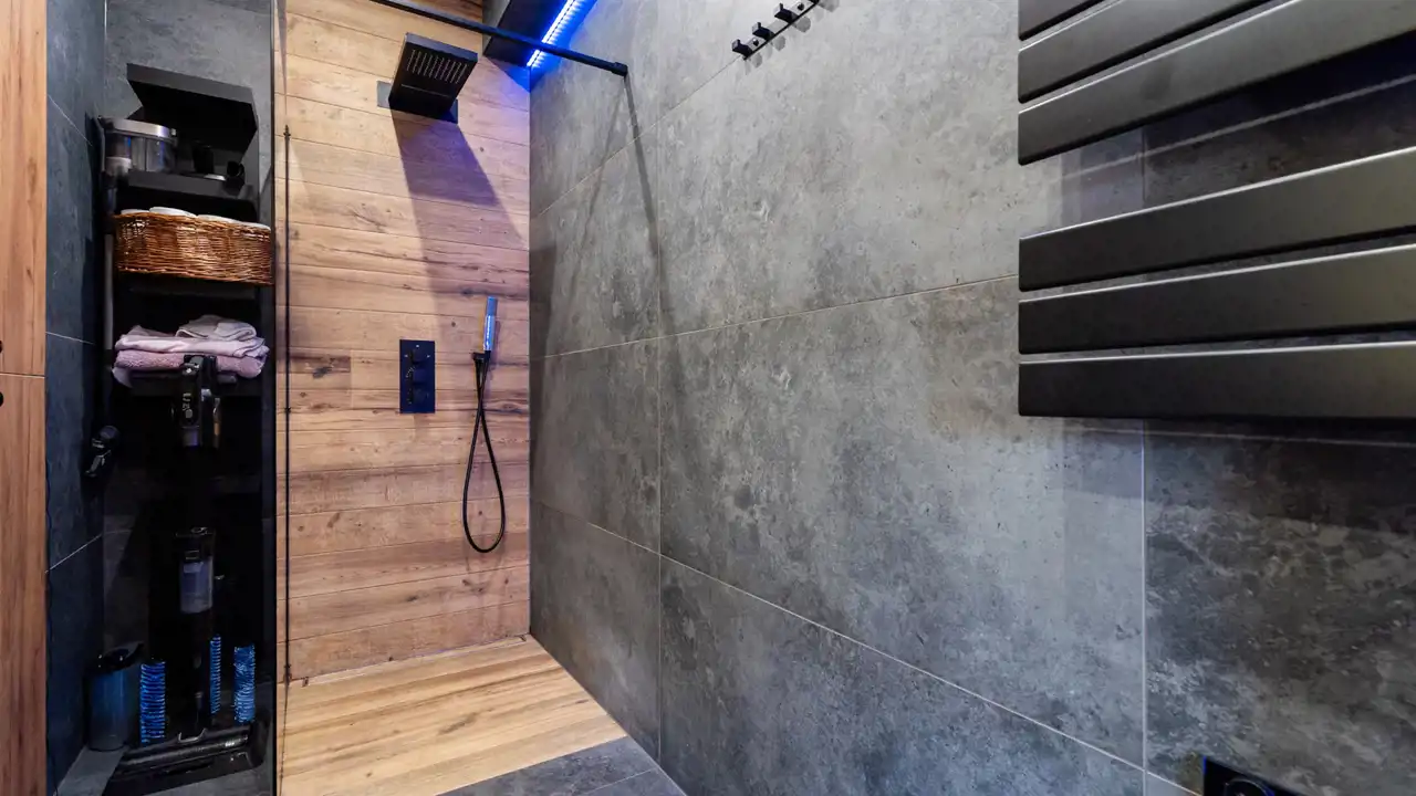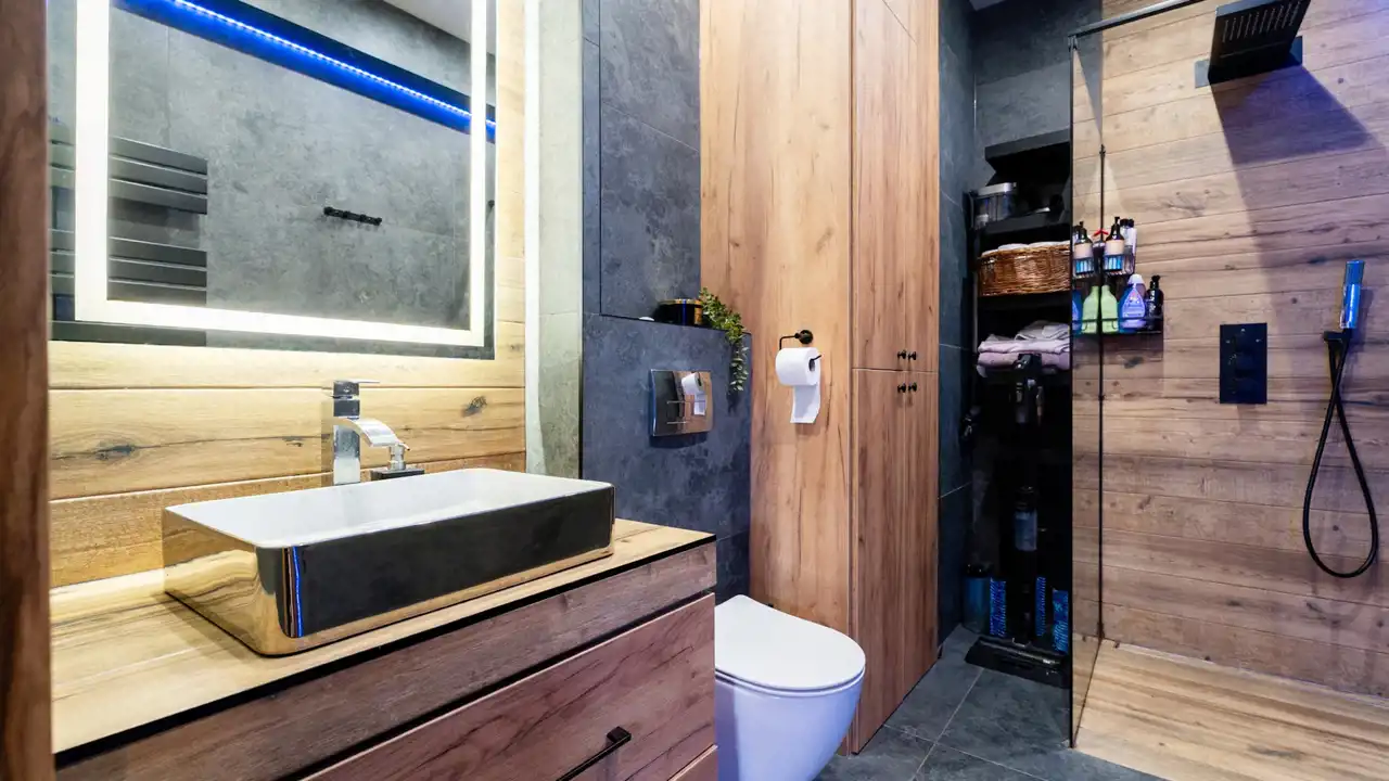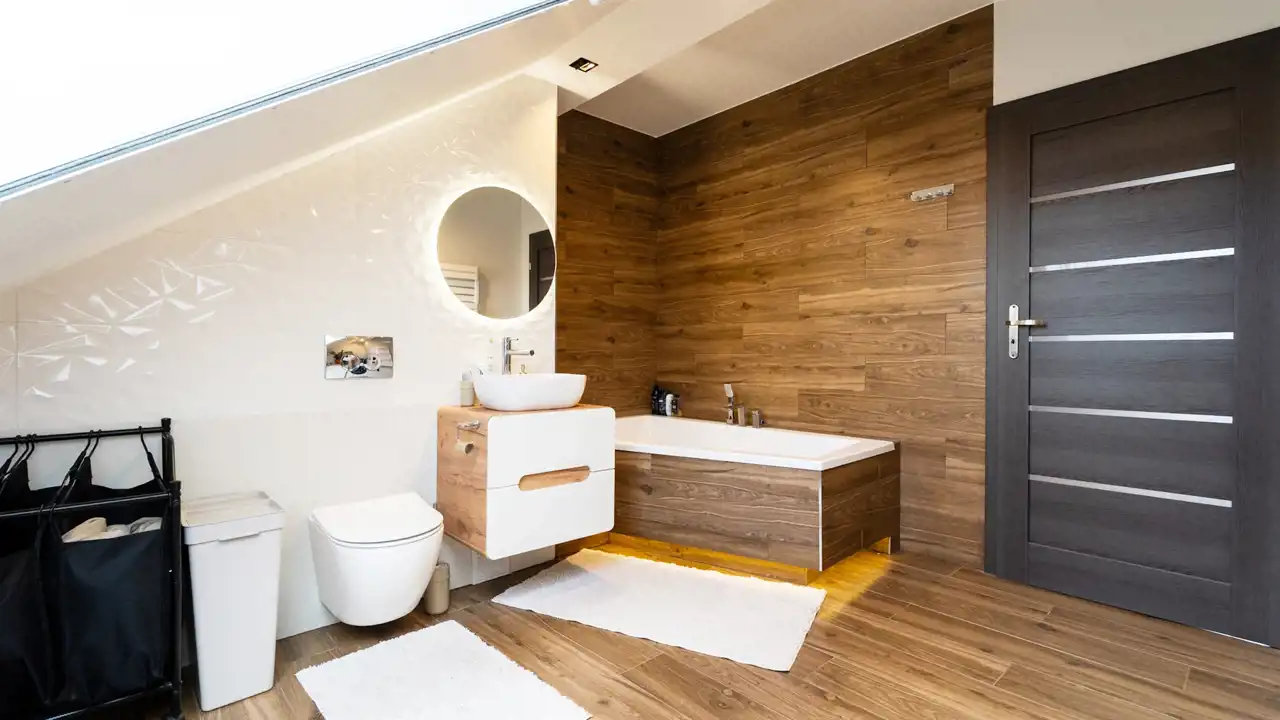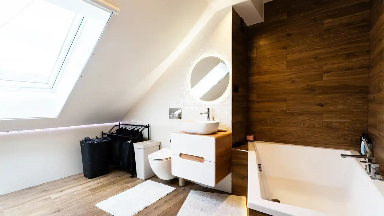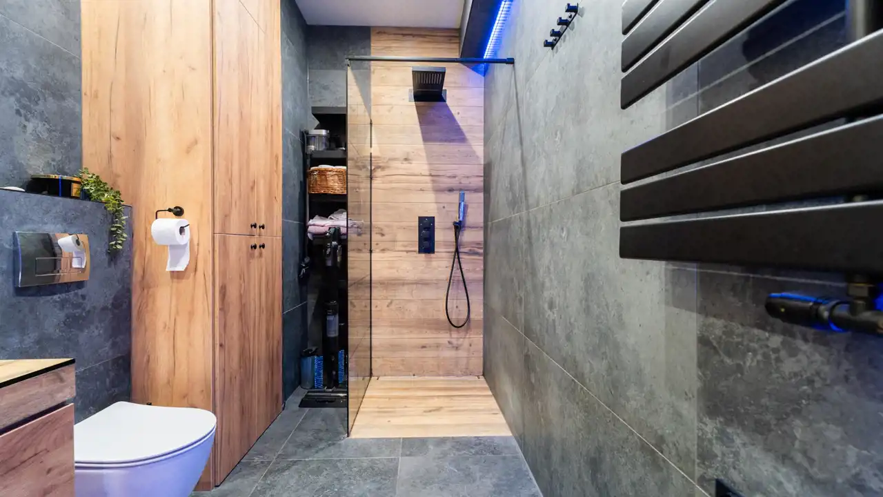 Nowoczesne łazienki dolna z kabiną prysznicową/ górna z dużą wanną