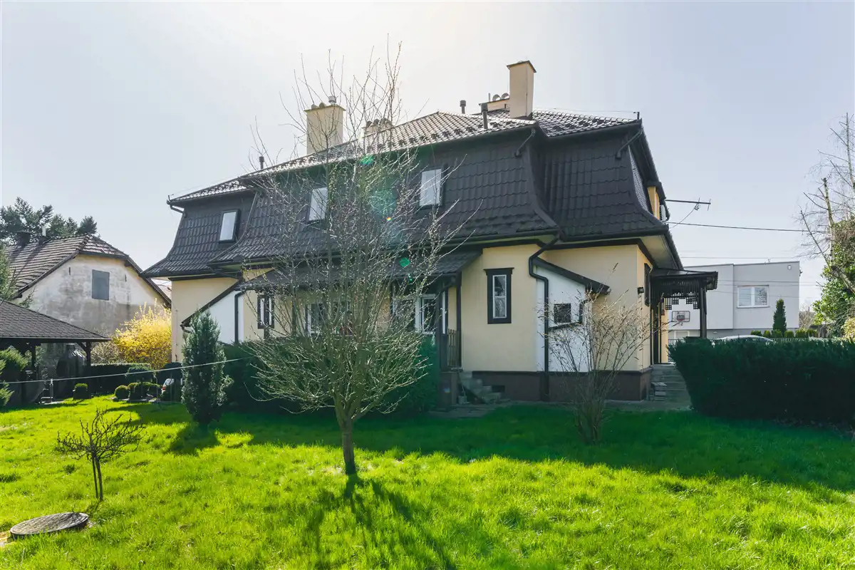 Prezentowane mieszkanie położone jest na 1 piętrze 2 kondygnacyjnego domu z lat 30-tych ubiegłego wieku, położonego na ogrodzonej, ładnie zagospodarowanej 12 arowej działce. Budynek w dobrym stanie wizualnym i technicznym.