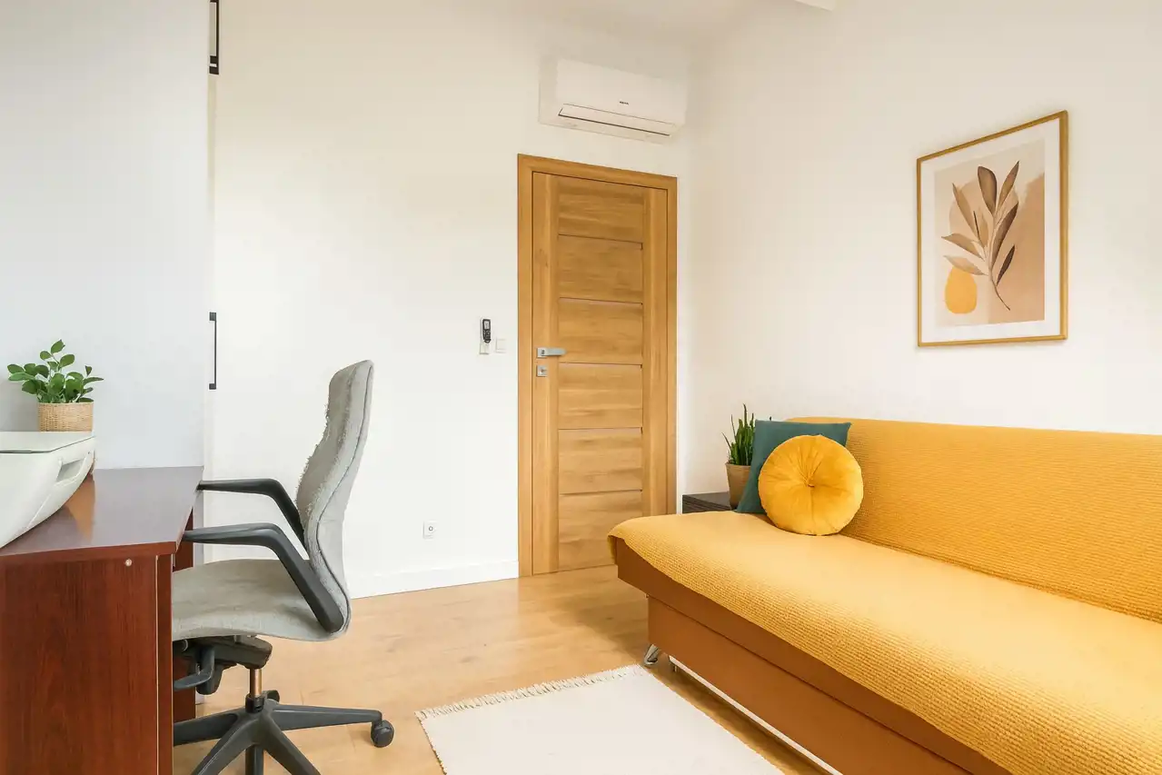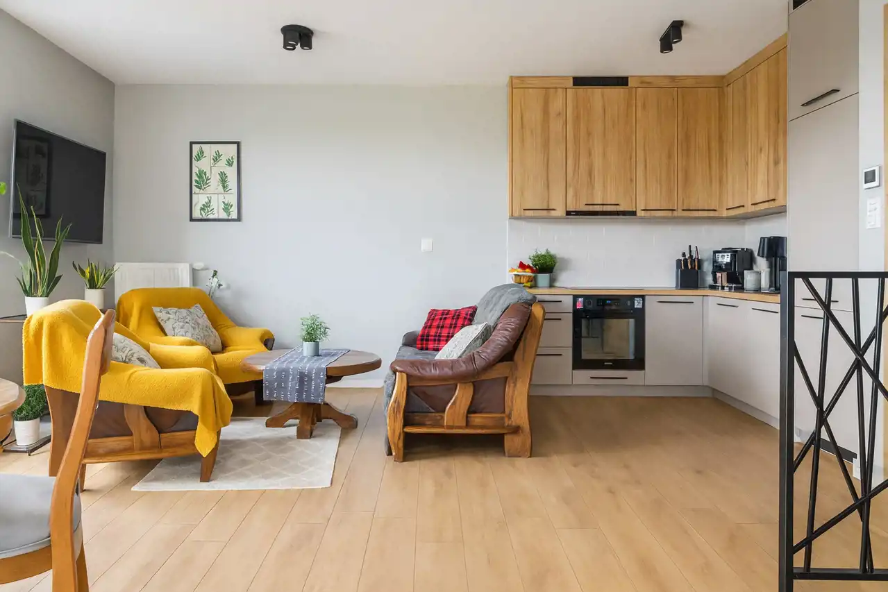 Apartament jest w pełni wyposażony i umeblowany tak, że można w nim z przyjemnością zamieszkać od zaraz.