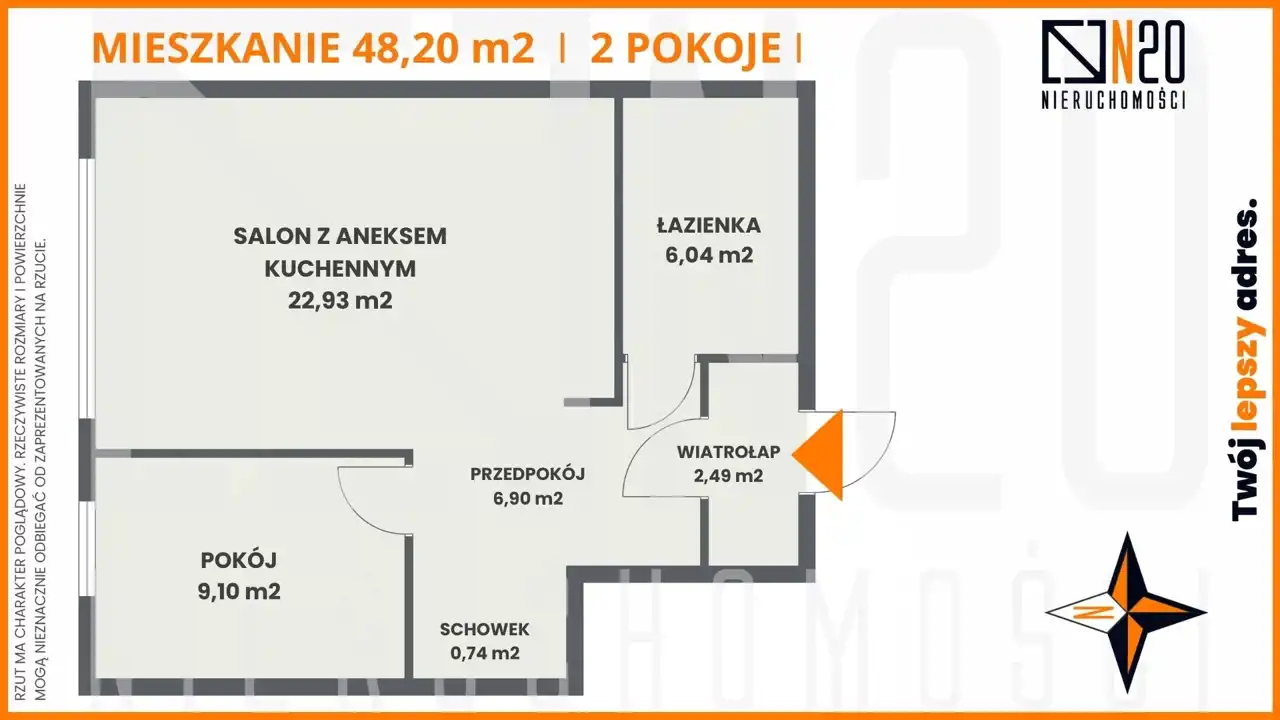 - Charakterystyka mieszkania 48.2 m2, 2 pokoje