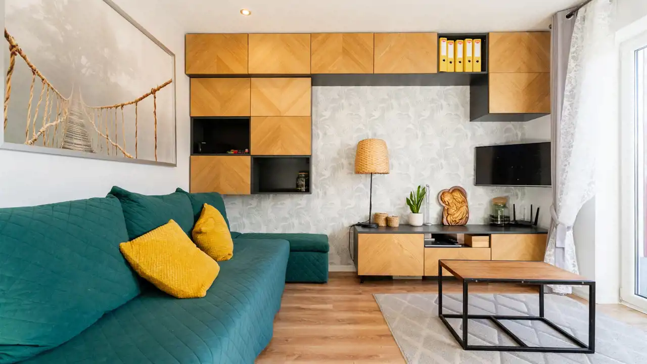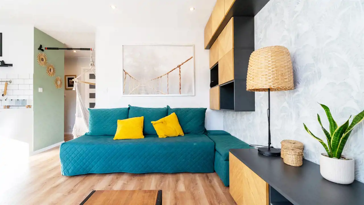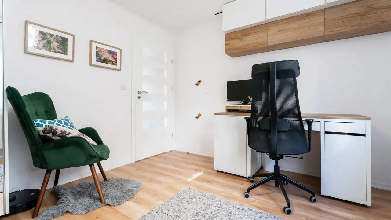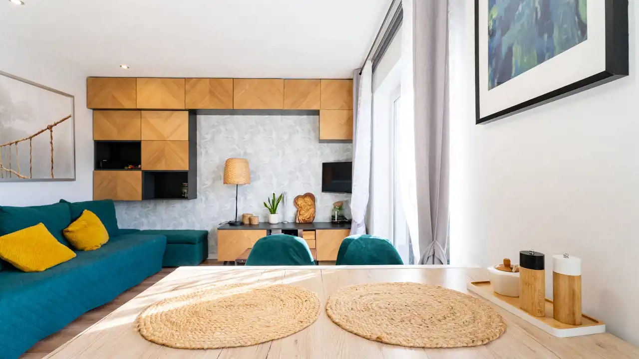 Mieszkanie wykończone dobrymi materiałami, z zachowaniem nowoczesnej kolorystyki.