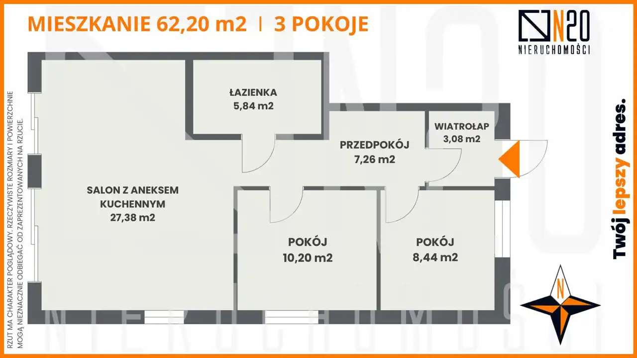 - Charakterystyka mieszkania 62.2 m2, 3 pokoje