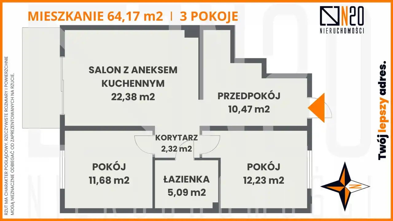 - Charakterystyka mieszkania 62.99 m2, 3 pokoje