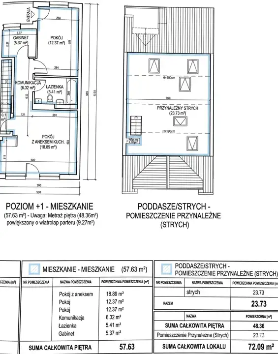 Łącznie do dyspozycji otrzymujesz blisko 80 m² realnej przestrzeni, z możliwością dalszej adaptacji według własnych potrzeb.