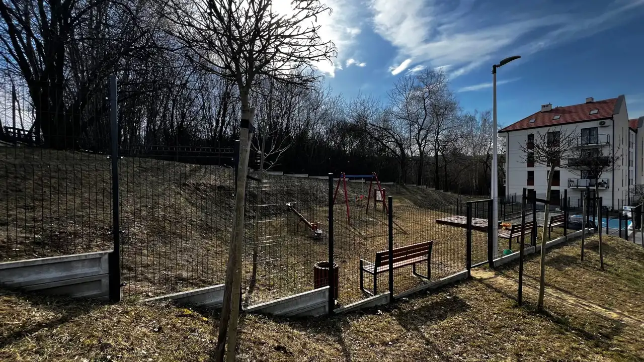 Budynek został wybudowany w 2023 roku i położony jest przy ślepej ulicy co zapewnia ciszę i prywatność. Teren jest ogrodzony, przy budynku jest kilka miejsc postojowych ogólnodostępnych, wjazd do garażu jest podgrzewany, wokół budynku oraz w garażu podziemnym znajduje się monitoring. Na ternie działki znajduje się plac zabaw, który w planach ma być rozbudowany. Ponadto planowana jest wiata rowerowa dla mieszkańców przy budynku.