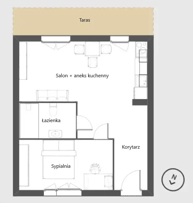 - Charakterystyka mieszkania 43 m2, 2 pokoje