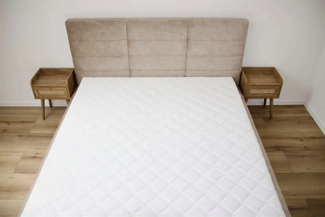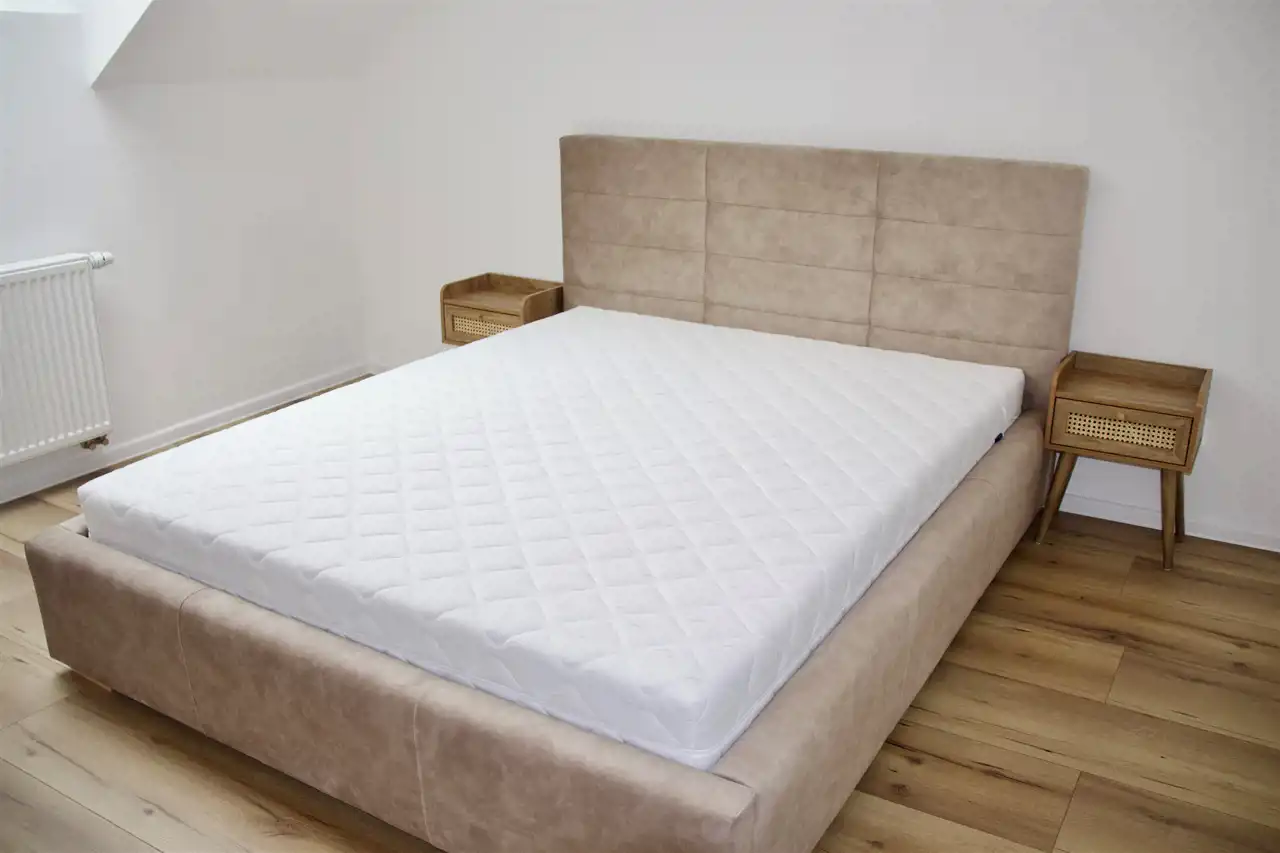 Sypialnia : duża szafa, łóżko 160 x 200 cm , szafki nocne, zasłony, firanki