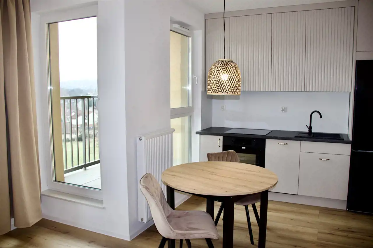 Oferujemy na wynajem nowe 2 pokojowe mieszkanie położone na IVpiętrze budynku z 2025 roku przy ulicy św Barbary 16F w Wieliczce na pograniczu Krakowa.