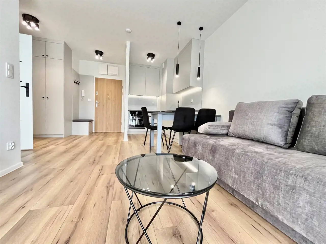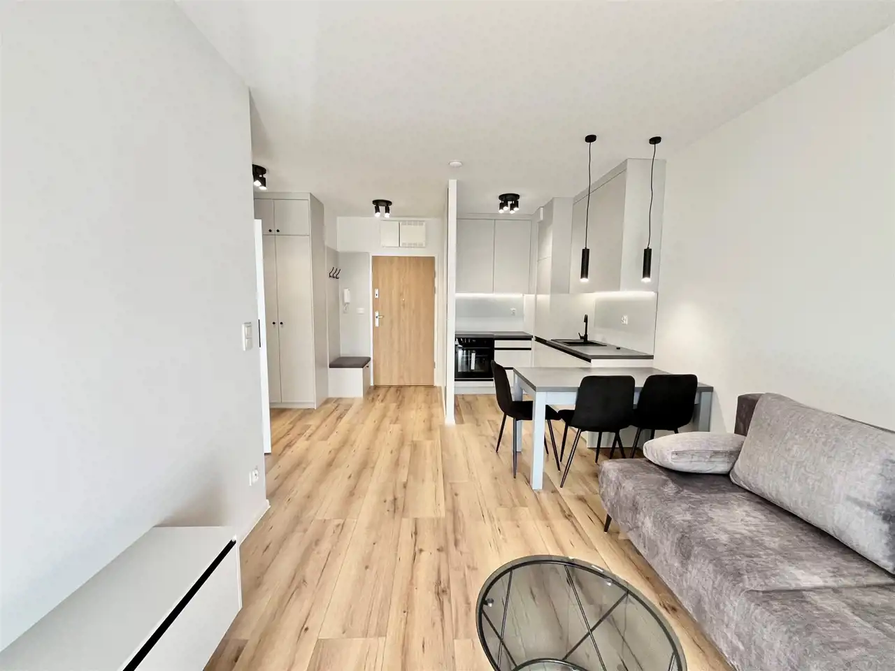 Oferowane mieszkanie to zupełnie nowy lokal starannie wykończony i zaprojektowany z myślą o wygodzie przyszłych użytkowników.