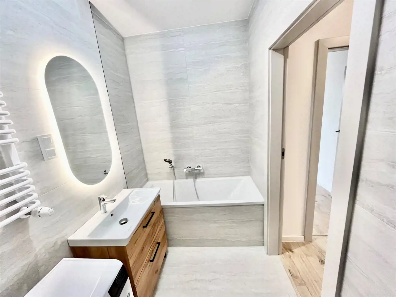 Oferowany lokal o powierzchni ok 50 m2 składa się z przedpokoju z dużą szafą w zabudowie, salonu z aneksem kuchennym i klimatyzacją, dwóch odrębnych sypialni z czego jedna z dużą szafą oraz łazienki z wanną.