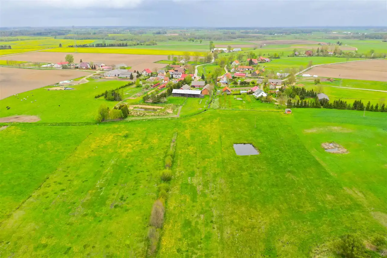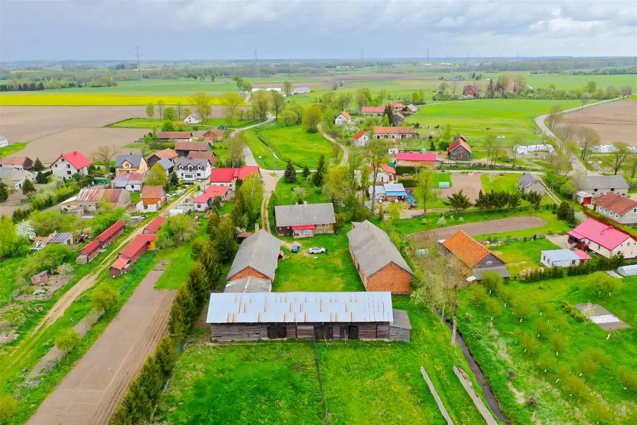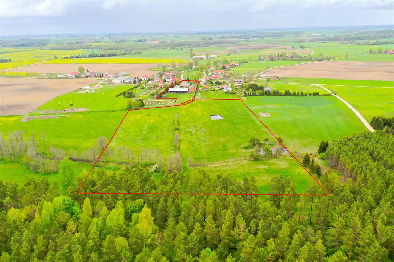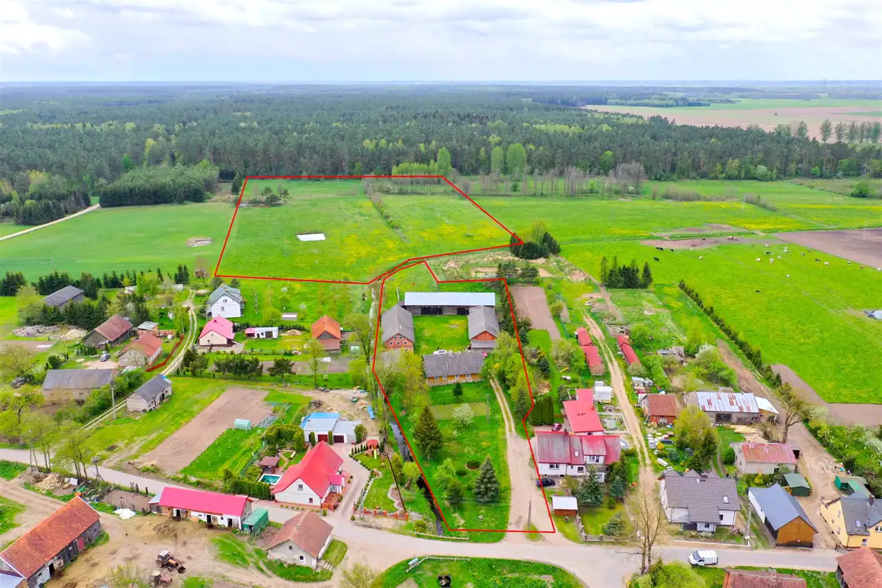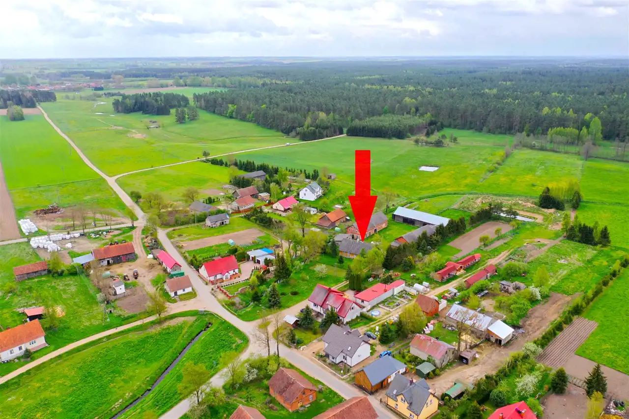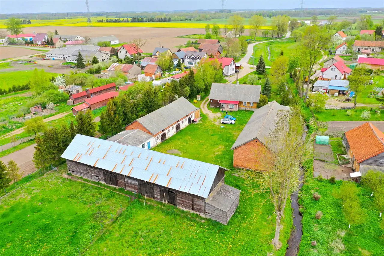 Nieruchomość składa się z 2 działek rolnych. Na jednej z nich posadowiony jest oryginalny mazurski dom jednorodzinny, o powierzchni użytkowej 125 m2, dwie obory z czerwonej cegły o powierzchniach zabudowy 247 m2 i 184 m2, drewniana stodoła o powierzchni zabudowy 263 m2 oraz dwa garaże o powierzchniach zabudowy 58 m2 i 34 m2.