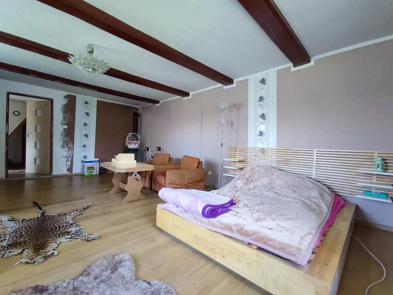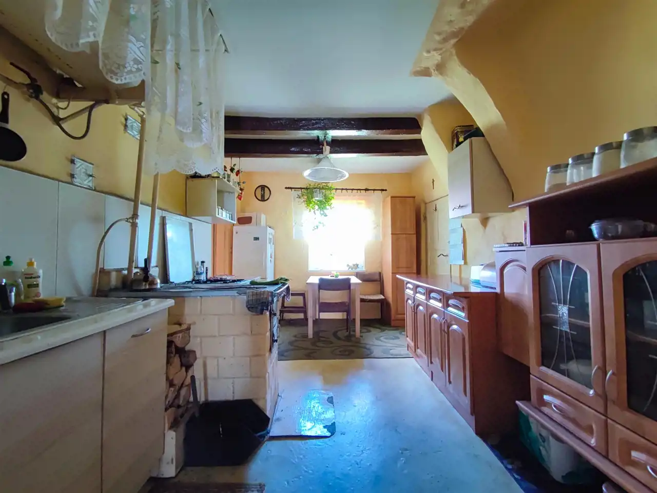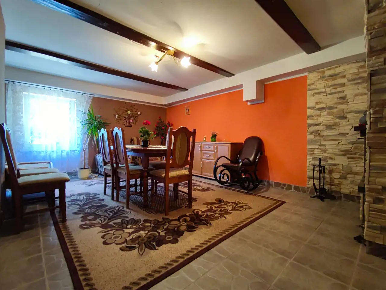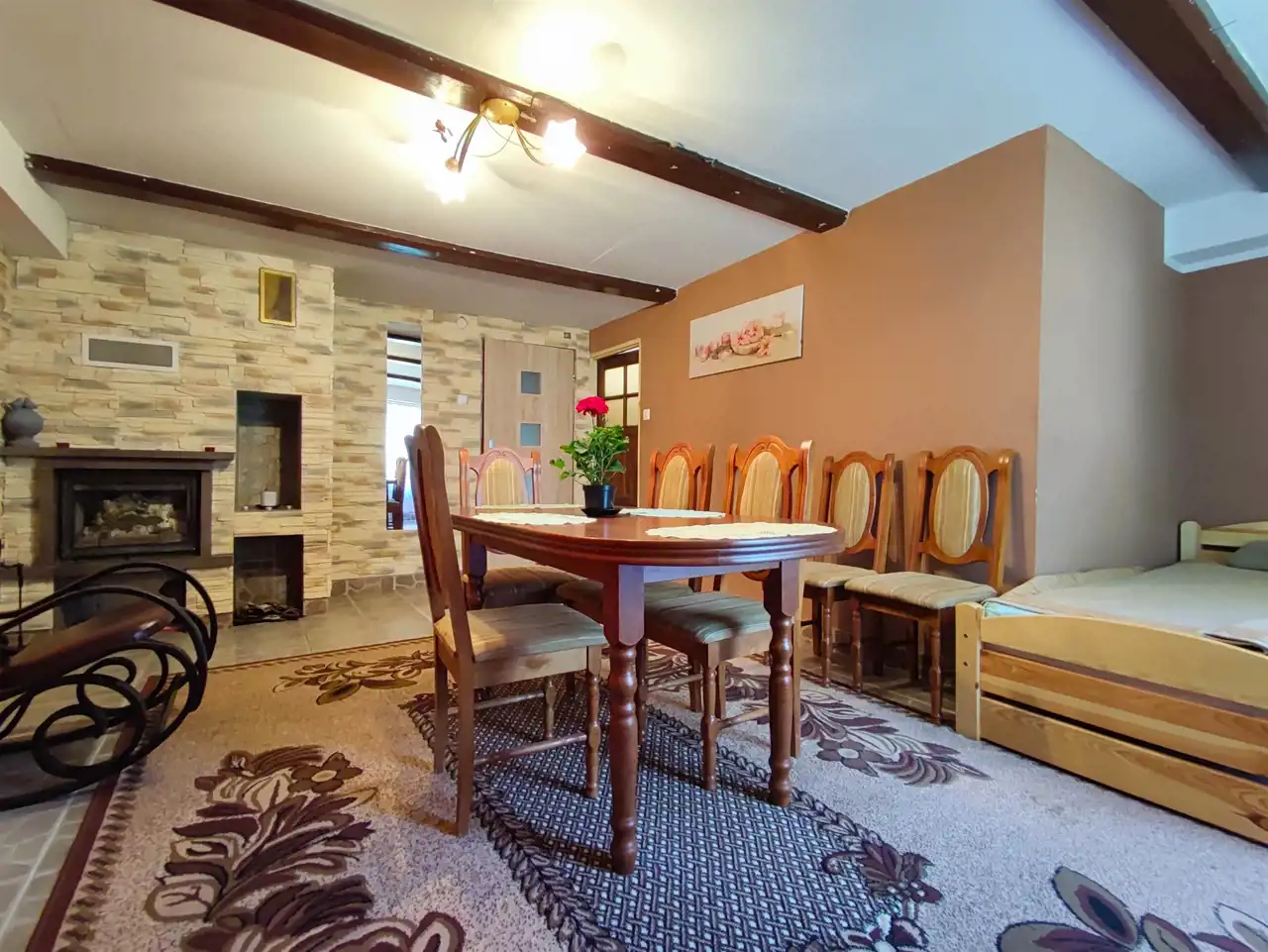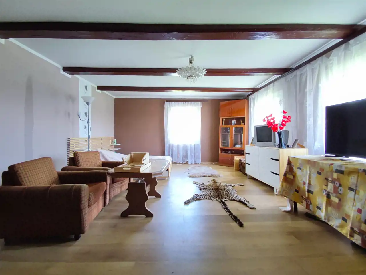 Przedwojenny dom, w całości podpiwniczony, ogrzewany piecami kaflowymi oraz kominkiem. Dach dwuspadowy, pokryty eternitem. Okna częściowo wymienione na plastikowe, instalacja elektryczna jest miedziana. Do budynku doprowadzony jest wodociąg gminny, kanalizację zastępuje szambo. Budynek składa się z salonu (24 m2), w którym znajduje się kominek, kuchni (14,5 m2), przedpokoju (12 m2), trzech pokoi (30 m2, 17 m2, 20 m2) oraz łazienki (5,5 m2). Dodatkowo można zagospodarować poddasze. Dom wymaga remontu.