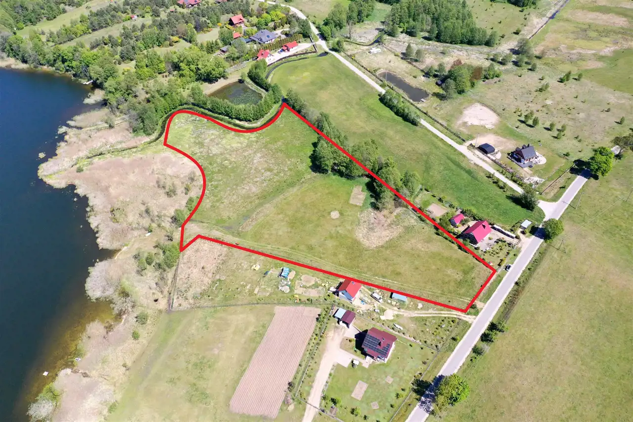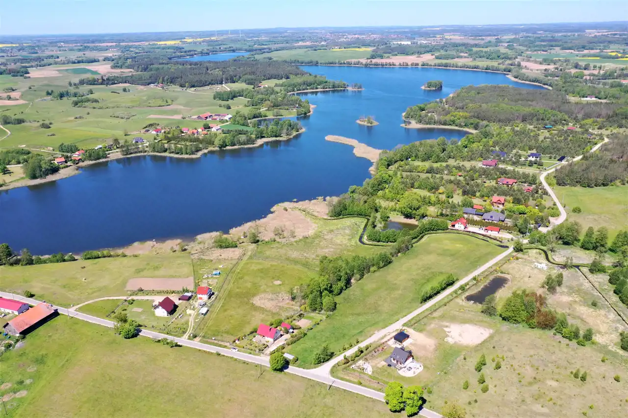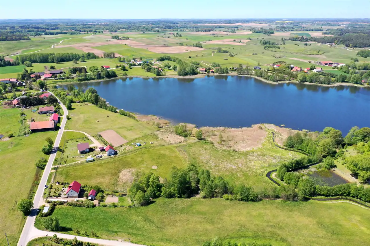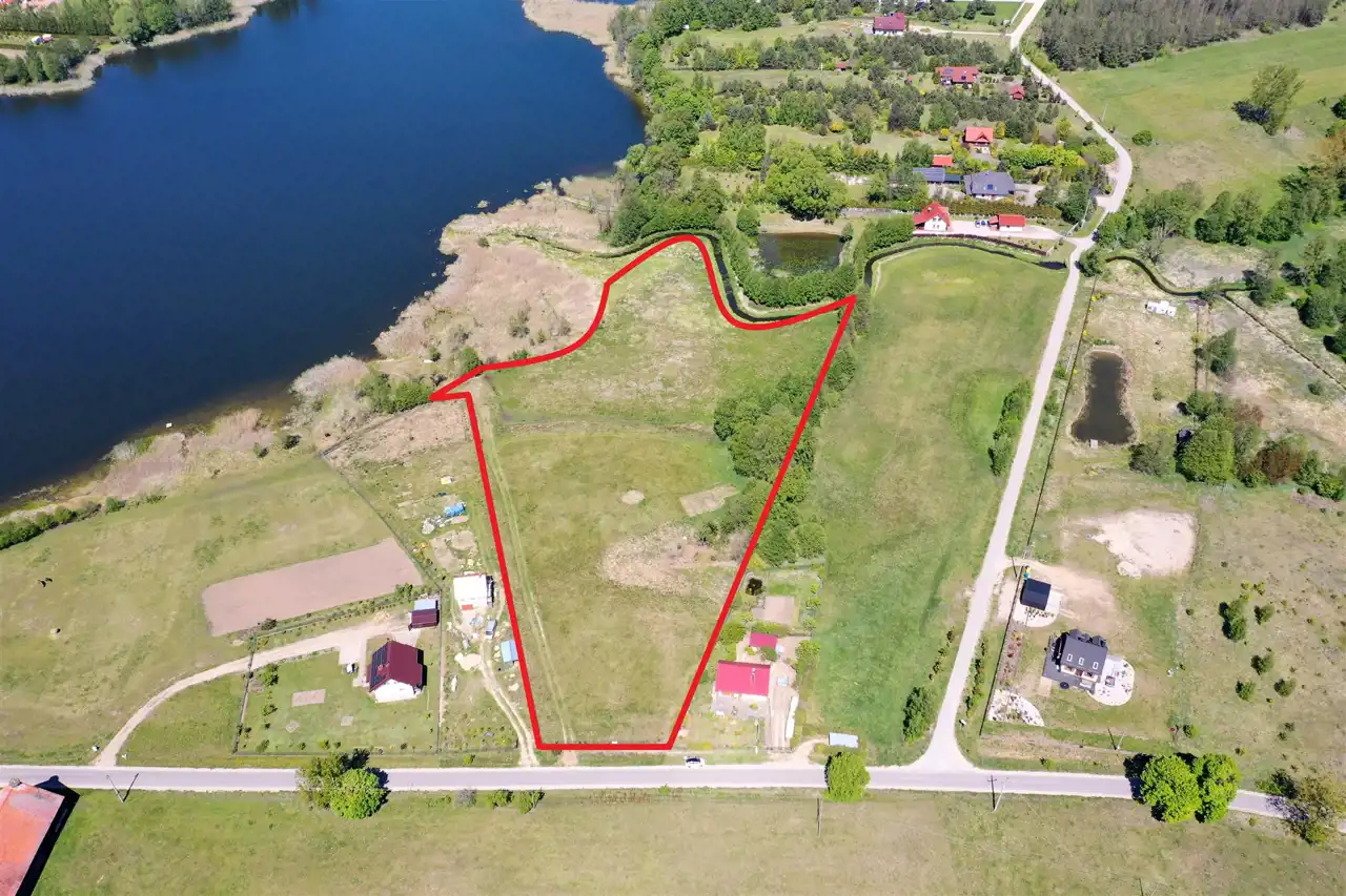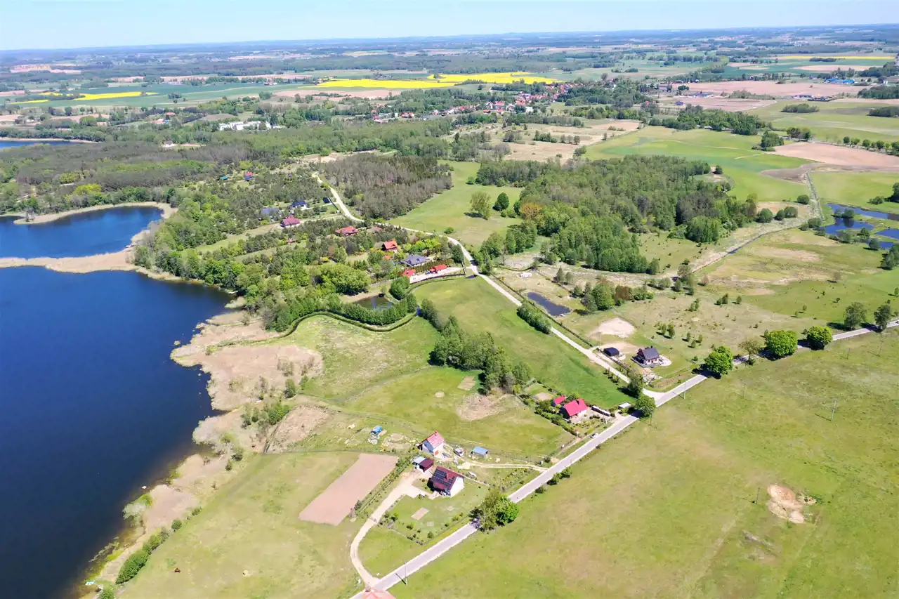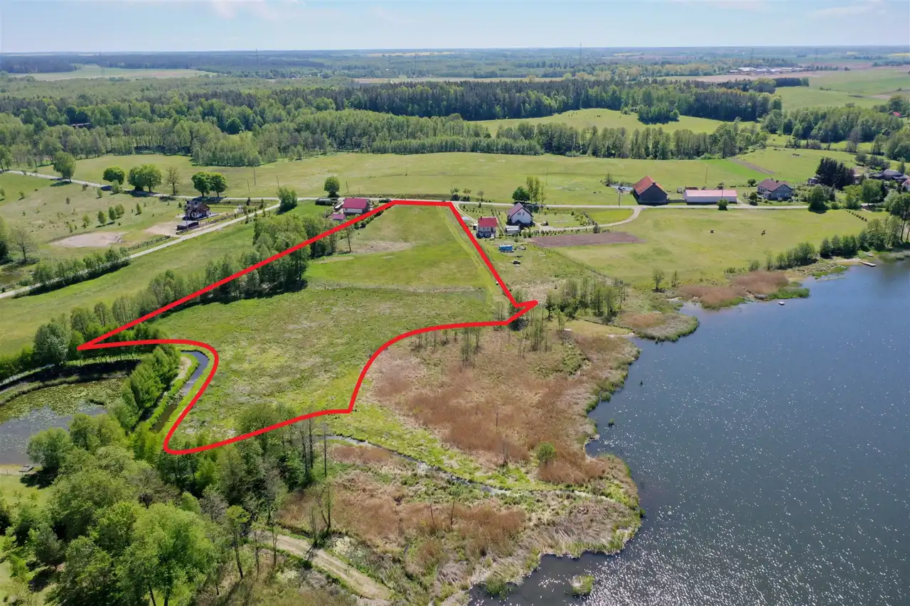 Działka zlokalizowana jest w cichej i spokojnej okolicy na obrzeżu wsi, graniczy bezpośrednio z lokalną asfaltową drogą gminną, zabudowanymi działkami i Jeziorem Olecko Małe. Teren działki jest lekko pagórkowaty i falisty, kształt działki nieregularny. Z miejsca przewidzianego pod zabudowę mieszkalną rozpościera się piękny widok na jezioro i okolice. Nieruchomość ta jest idealnym miejscem do budowy wymarzonego domu jednorodzinnego na Mazurach.