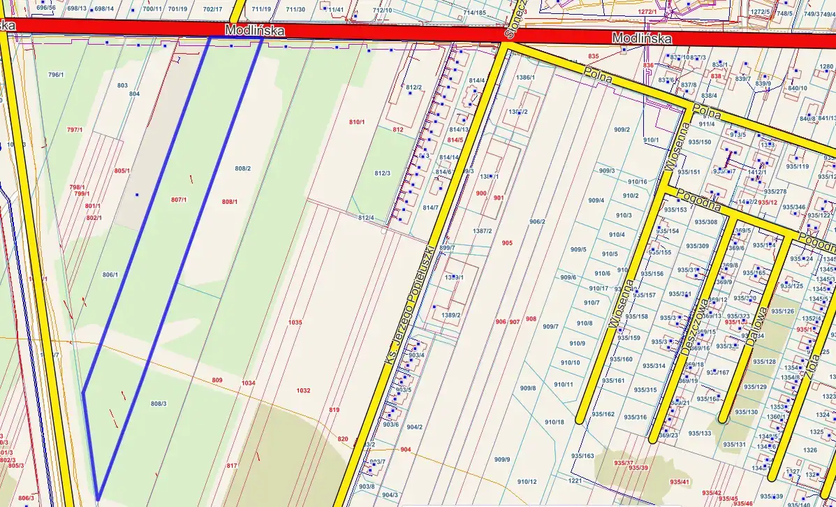 Wieliszew ulica Modlińska, numer działki 807/1.