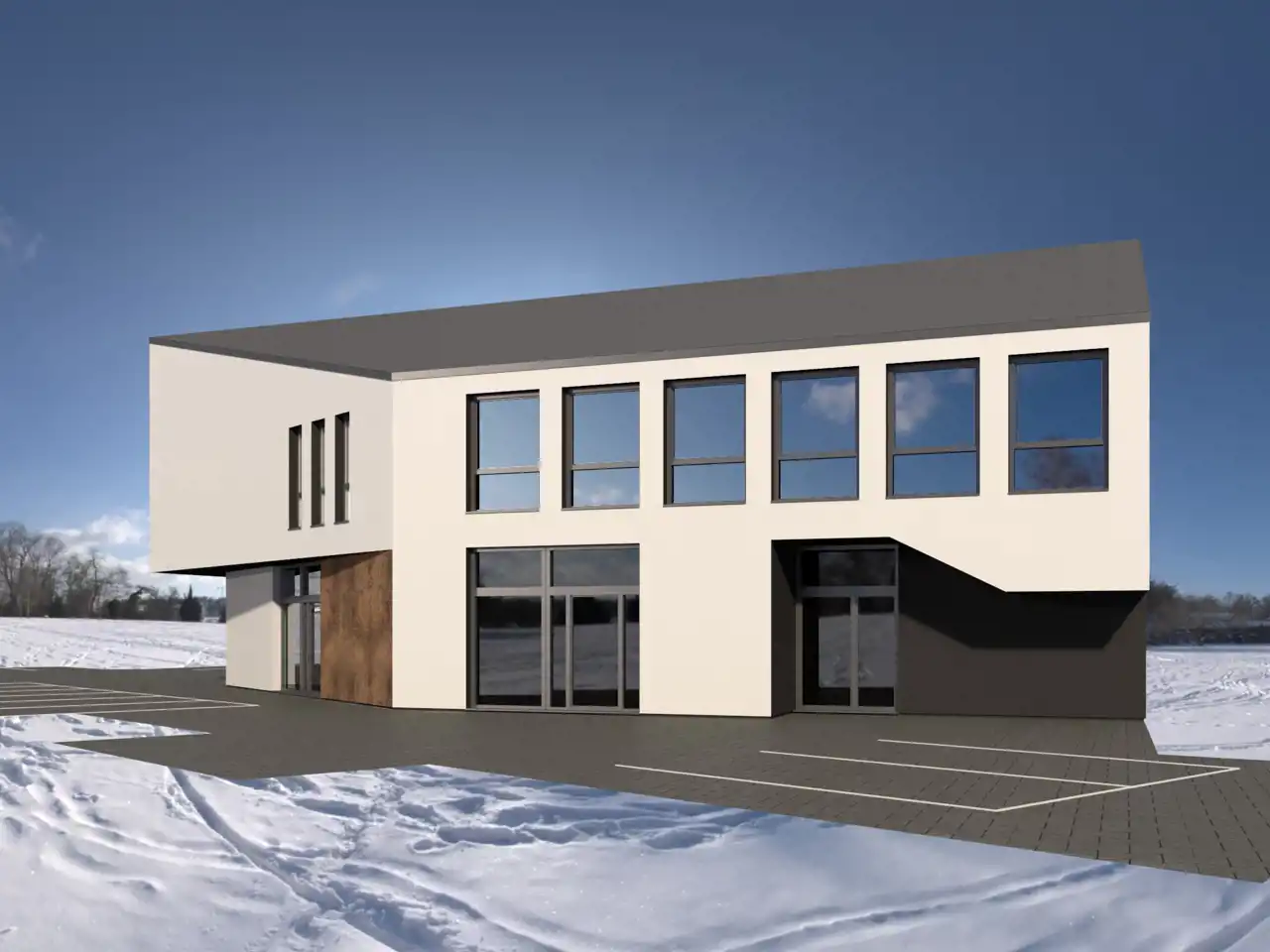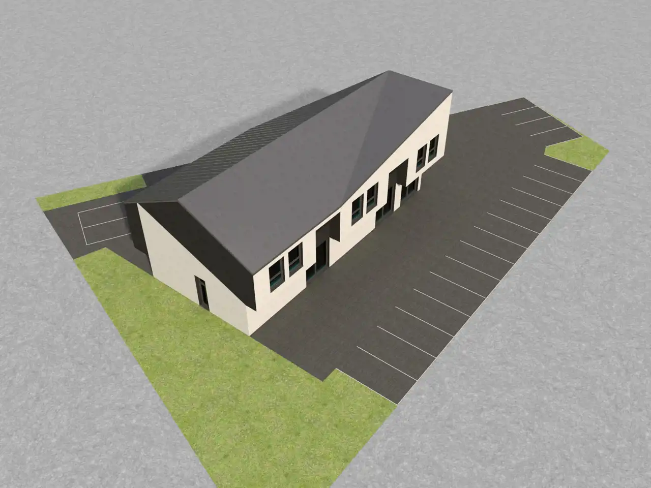 Projekt obejmuje budowę budynku usługowego. Na parterze przewidziano dwa lokale handlowe –