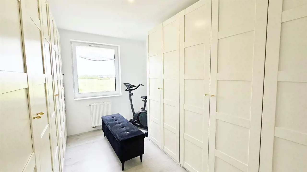 - Elegancja i Funkcjonalność: Stylowa łazienka oraz praktyczne pomieszczenie gospodarcze (przerobiona toaleta) podnoszą komfort użytkowania.