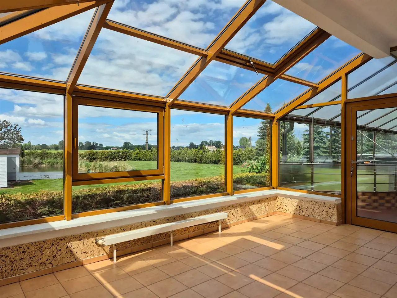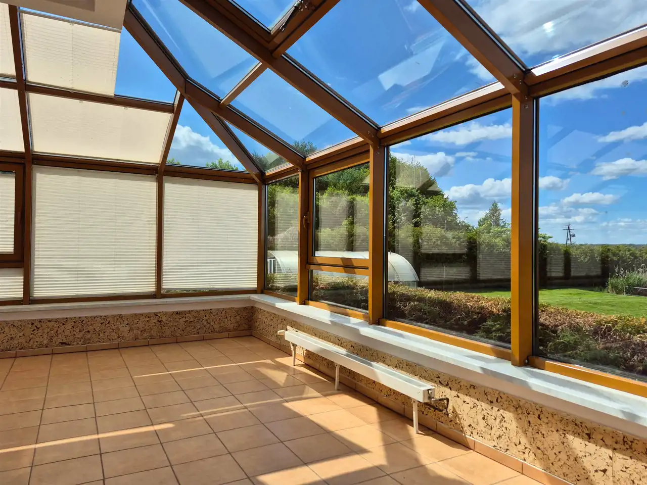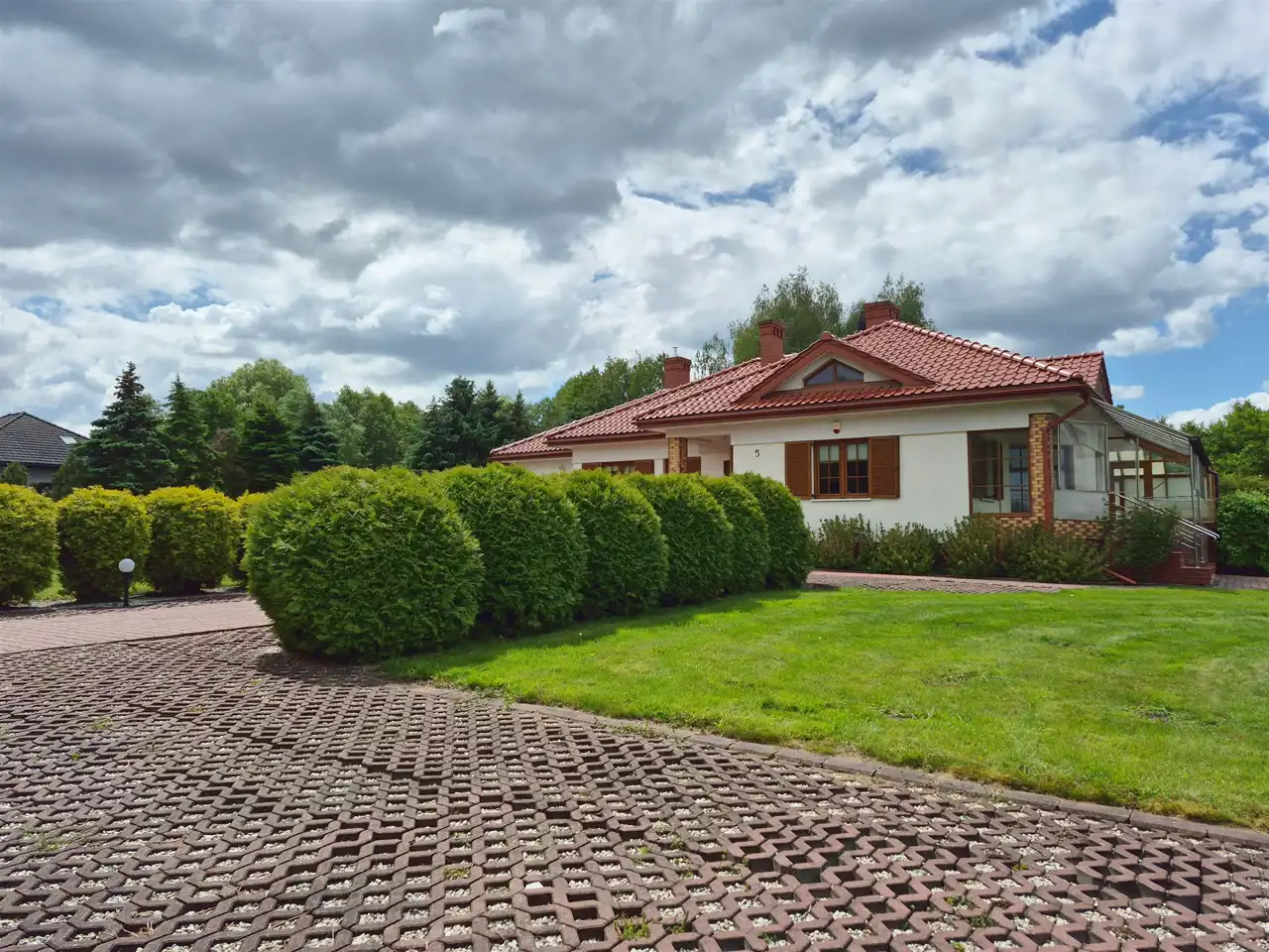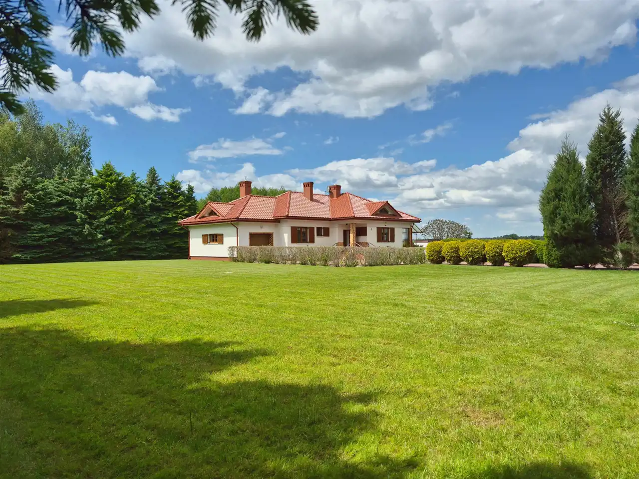 Całość ogrodzona i pięknie zagospodarowana. Monitoring i alarm. Automatyczna brama wjazdowa. Podjazd i teren wokół domu wyłożony kostką brukową, schody od frontu podgrzewane. W ogrodzie liczne, piękne nasadzenia. Na posesji znajduje się duży, zadbany staw, tuż przy nim domek, dalej zadaszona wiata z dodatkowym pomieszczeniem na narzędzia gospodarcze oraz mini szklarnia.
