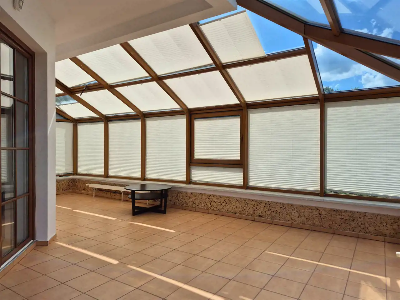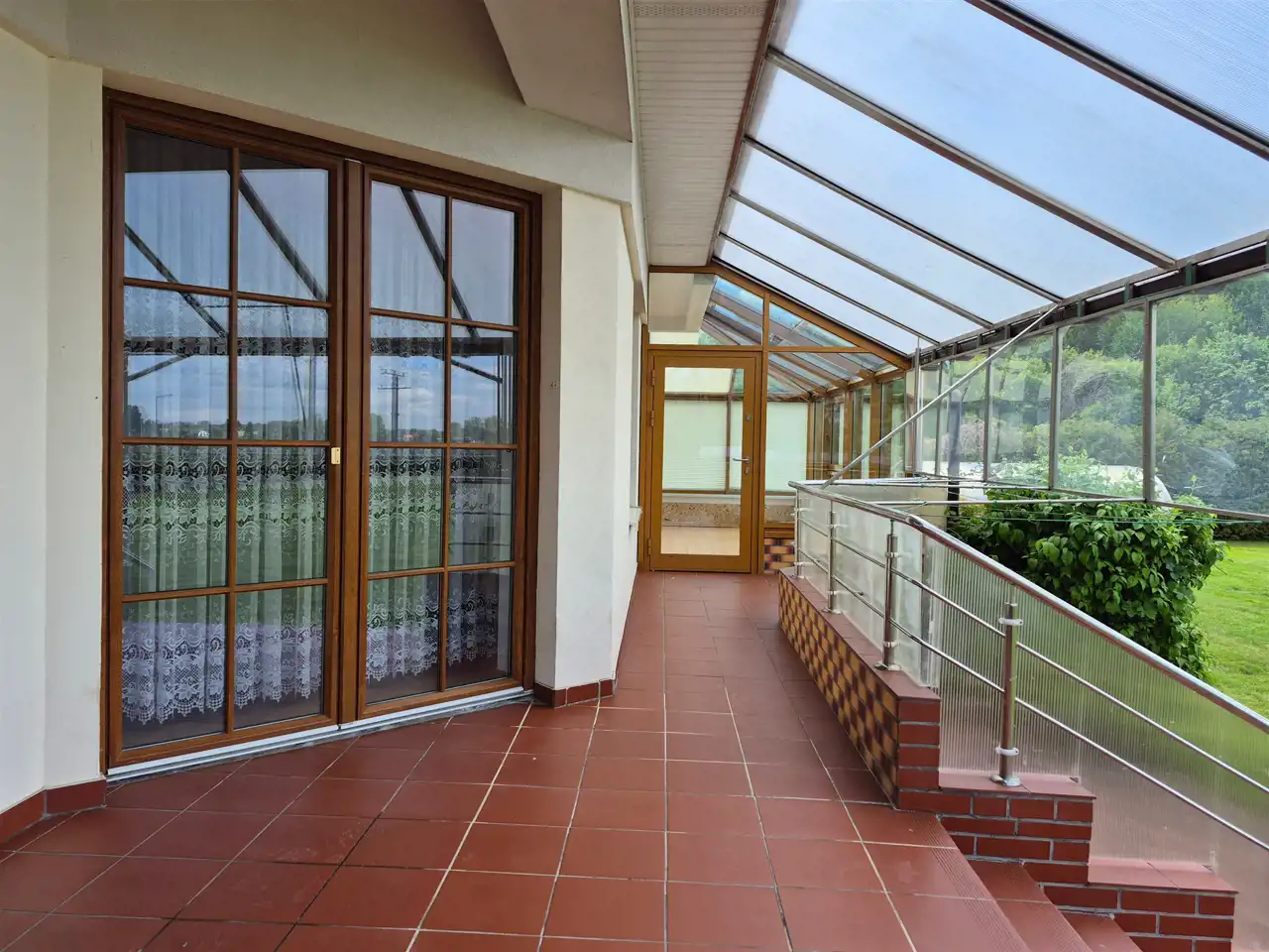 - salonu z kominkiem z wyjściem na zabudowany, oszklony taras,
