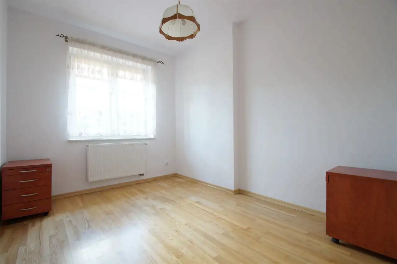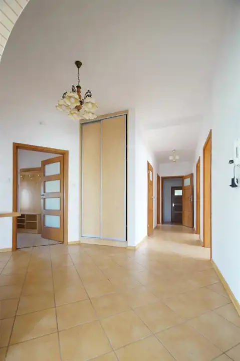 Nowoczesna zabudowa kuchenna z wysokiej klasy sprzętem AGD, w przedpokoju dwie zabudowane szafy, domofon. Pokoje dobrze oświetlone światłem naturalnym, czyste, zadbane, na ścianach gładzie. Ogrzewanie przy pomocy kotła gazowego, alternatywnie elektryczne.