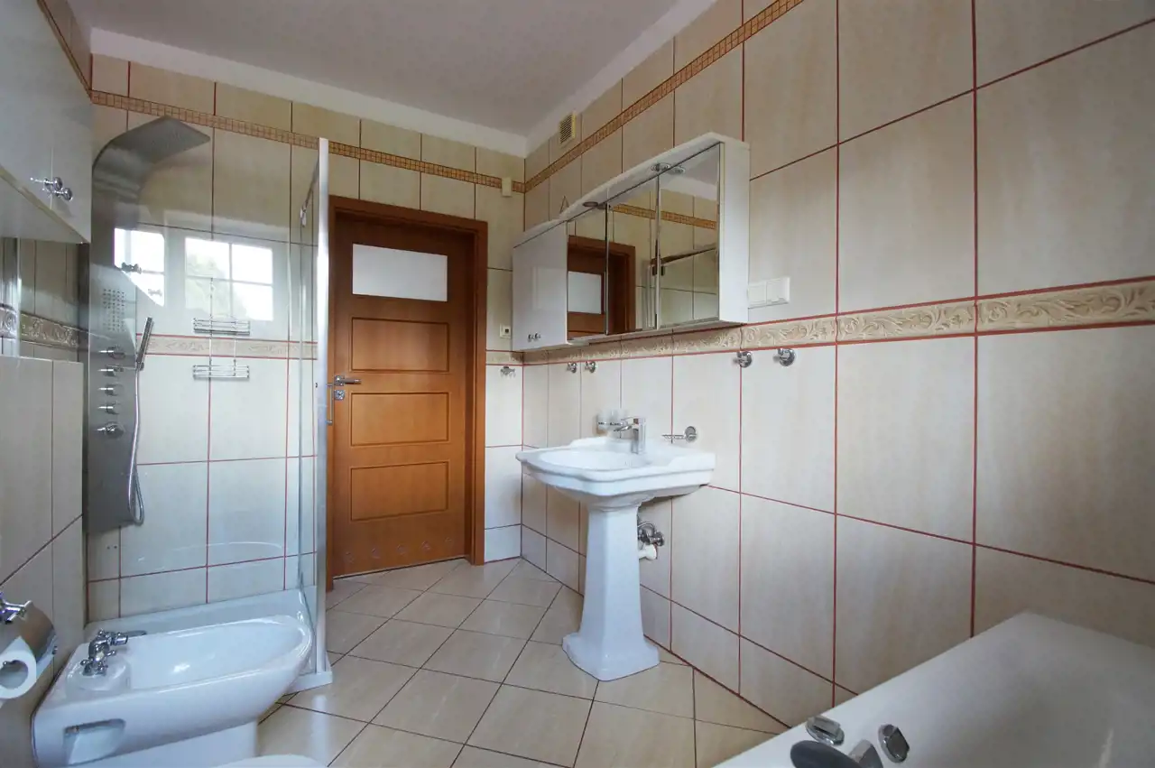 - duża łazienka z wanną oraz natryskiem ( z hydromasażem), bidet i wc,