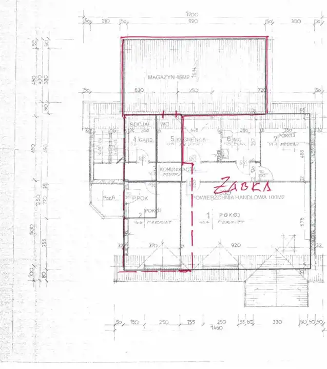 Lokal składa się z magazynu o powierzchni 45m2 oraz 35m2 części sprzedażowej i socjalnej.
