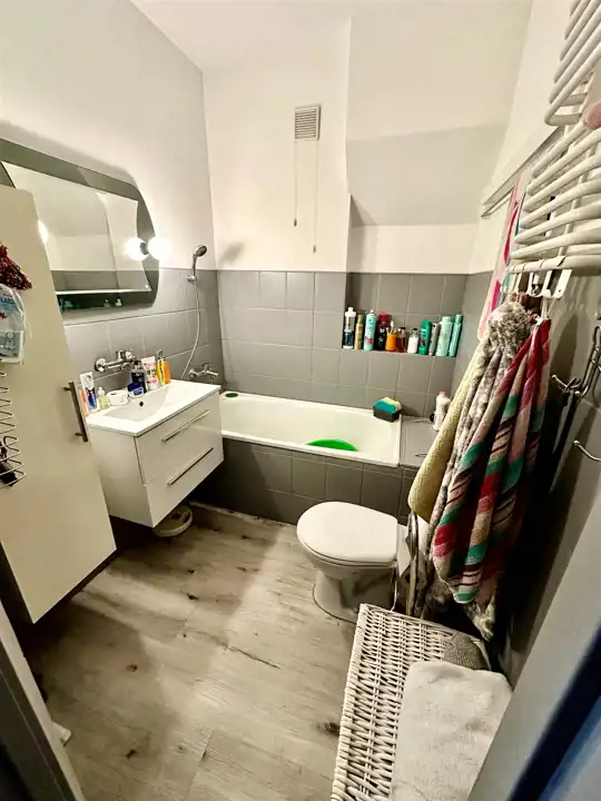 2- około 110m2, pokój dzienny z aneksem kuchennym, dwie przestronne sypialnie, łazienka z WC, wyjście na strych gdzie znajduje się pokój około 30m2