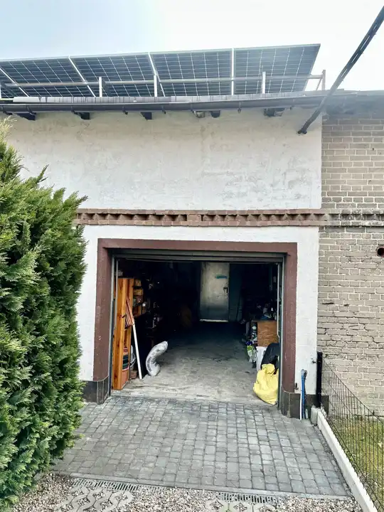 instalacja fotowoltaiczna o mocy 10 kW zamontowana na dachu warsztatu,