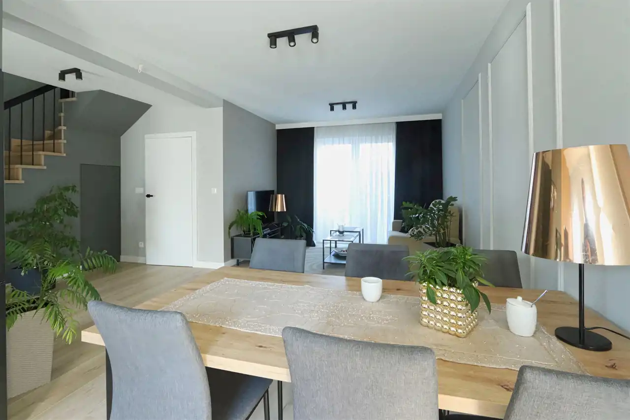 Dom w stanie bardzo dobrym w całości wykończony i zagospodarowany - przeznaczony do sprzedaży z całym wyposażeniem - działka prostokątna z ogrodem oraz garażem zewnętrznym na 2 samochody - na podjeździe dodatkowo 2 miejsca postojowe.