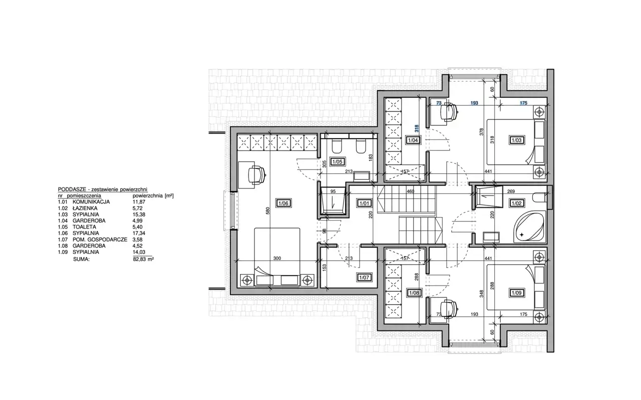 Poddasze – 82,83 m²: