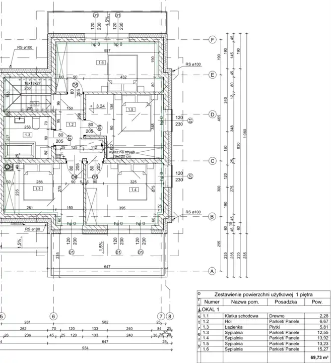– przedpokój z klatką schodową ,