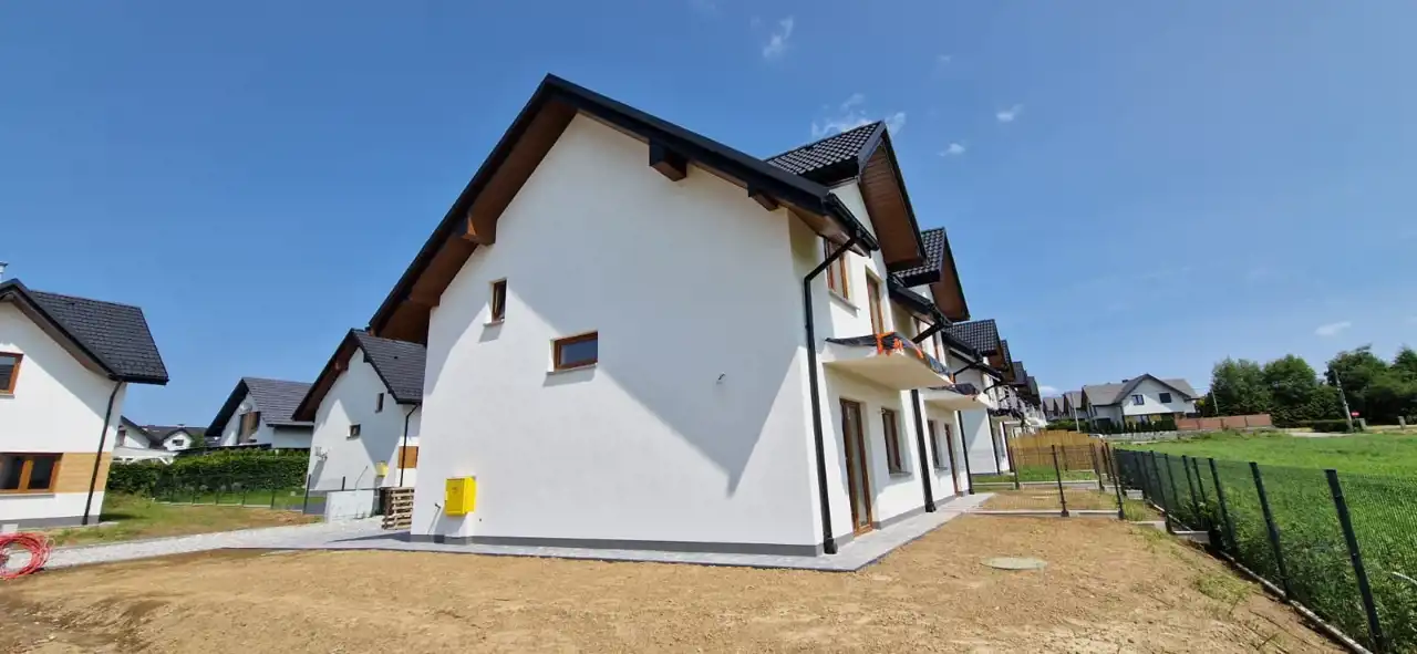 Dom położony na osiedlu domów jednorodzinnych. Dojazd do działki drogą gminną asfaltową, a następnie drogą wewnętrzną utwardzoną (współudział). Dogodna lokalizacja: blisko przystanek MPK, sklepy około 350m (Biedronka, Lidl, Rossman. Lewiatan), blisko szkoła, przedszkole, ośrodek zdrowia. Bardzo dobre połączenie z autostradą A4, szybki dojazd do Krakowa.