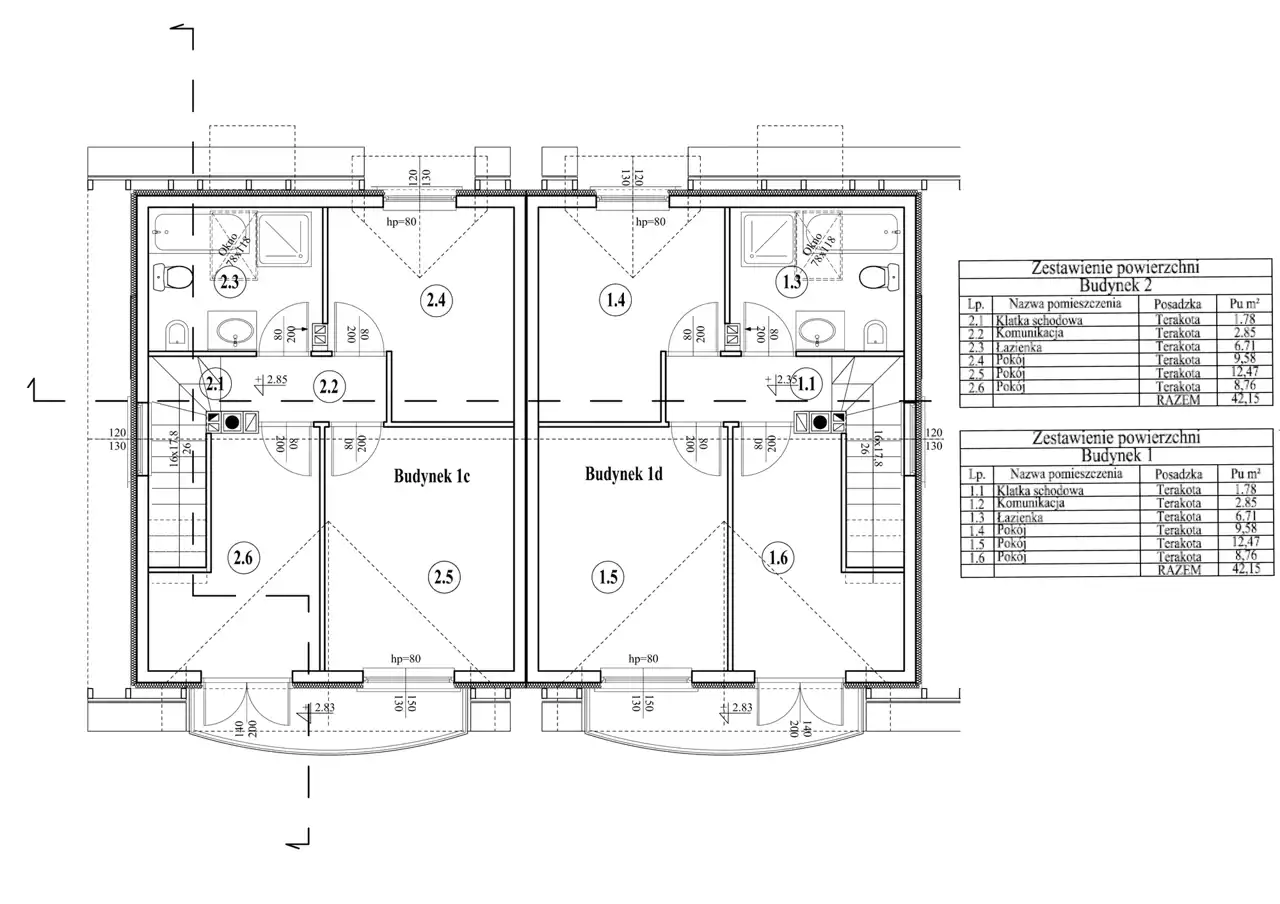 Poddasze: pokój (9,15m2), pokój (11,23m2), pokój (9,21m2), przedpokój (2,27m2), łazienka (6,20m2), klatka schodowa (1,97m2) - łącznie 40,04m2 + dodatkowo strych około 40m2