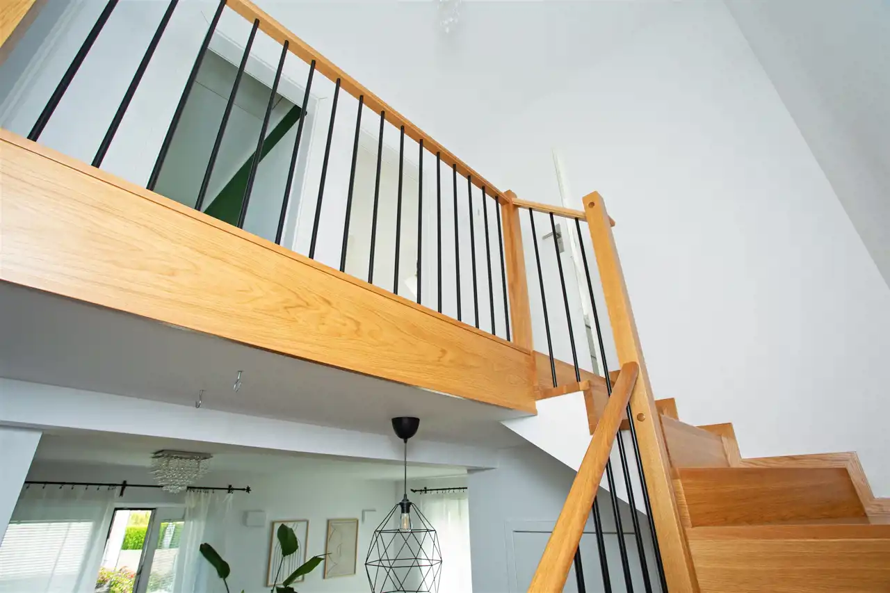 - na piętrze znajdują się trzy ustawne sypialnie, w tym dwie z balkonami oraz łazienka z wanną.