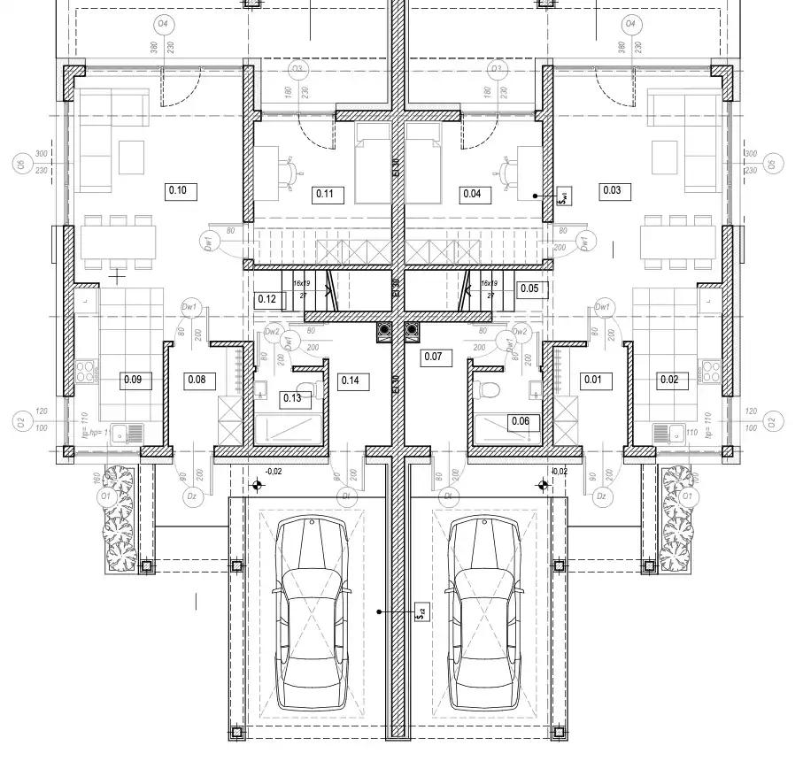 Budynek został zrealizowany jako budynek mieszkalny jednorodzinny dwulokalowy (zgodnie z pozwoleniem na użytkowanie), natomiast jego układ funkcjonalny, oddzielne wejścia oraz podział działek w pełni odpowiadają standardowi domu typu bliźniak, zapewniając komfort i niezależność charakterystyczną dla zabudowy jednorodzinnej.
