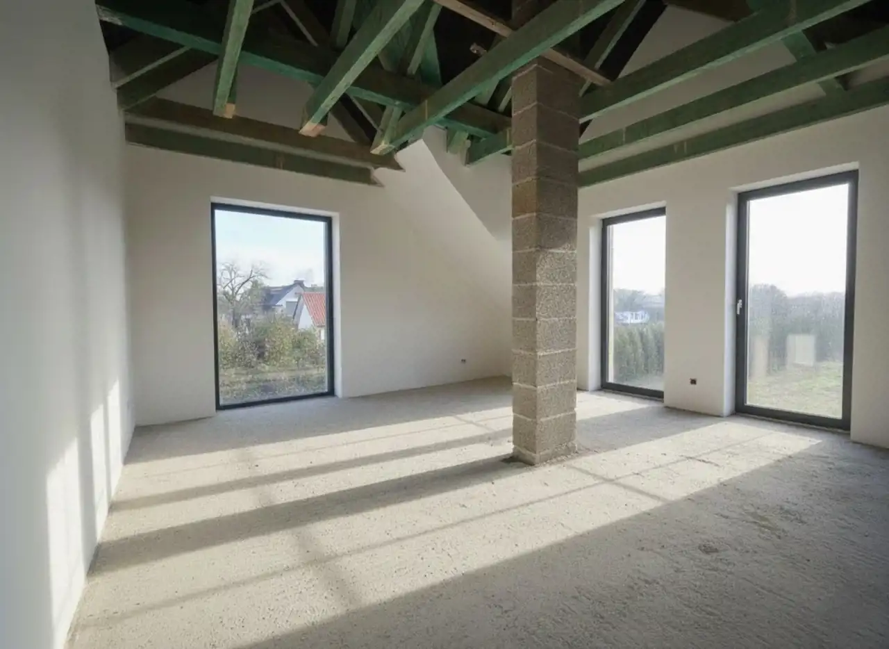Domy sprzedawane są w stanie deweloperskim, z kompletem instalacji oraz zamontowanym gazowym kotłem kondensacyjnym, co umożliwia szybkie i wygodne wykończenie wnętrz według własnych potrzeb.