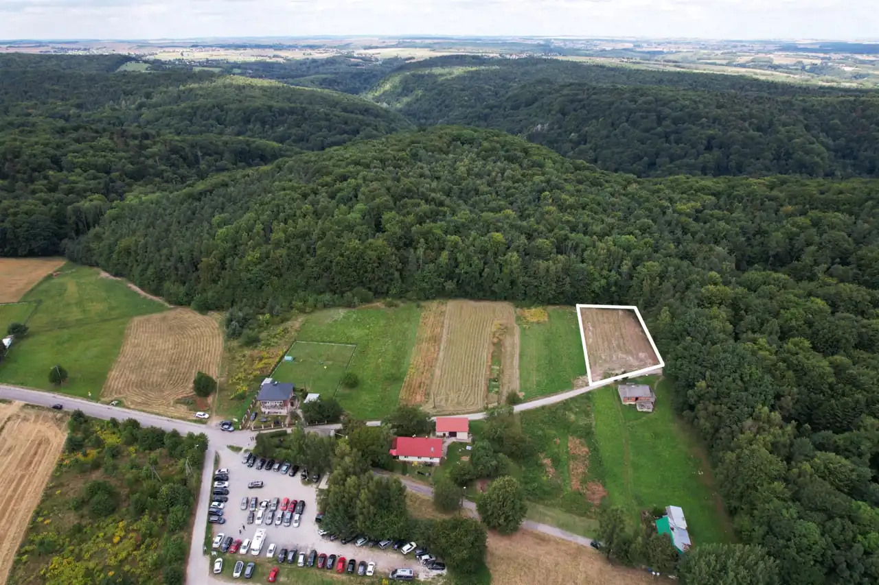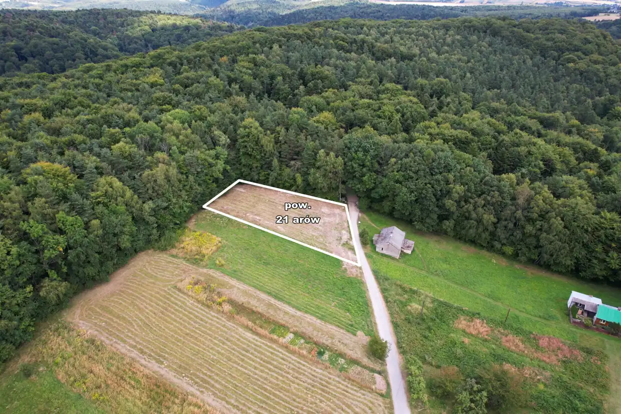 Działka położona w cichej i spokojnej części miejscowości. Wokół luźne tereny zabudowy oraz liczne tereny leśne. W pobliżu sklep (1km), przystanek MPK - 2 km.