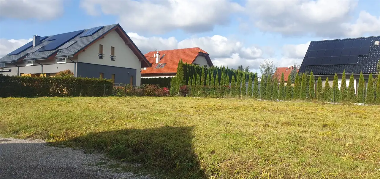 Zabudowa zwarta, osiedlowa, cicha okolica, w sąsiedztwie tylko nowe domy, pełne uzbrojenie, wszystkie media w drodze przy działce : prąd, woda, gaz, kanalizacja. I linia zabudowy przy drodze szutrowej. Miejscowy plan zagospodarowania przestrzennego - tereny zabudowy jednorodzinnej MN, powierzchnia zabudowy max 25%. Teren prawie płaski o ekspozycji południowej, z widokiem na góry.