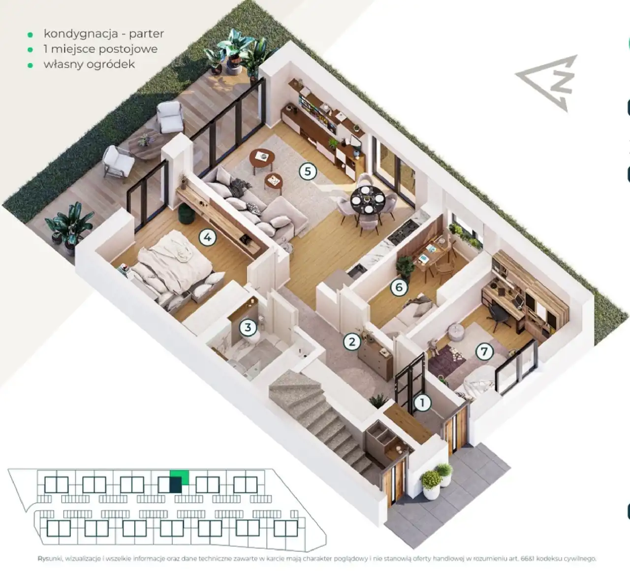 – lokal na parterze o pow. 67 m2 z dużym, prywatnym ogródkiem (92,16m2)