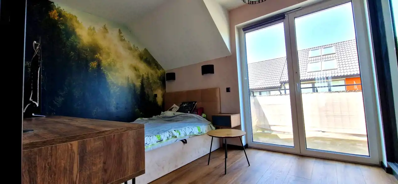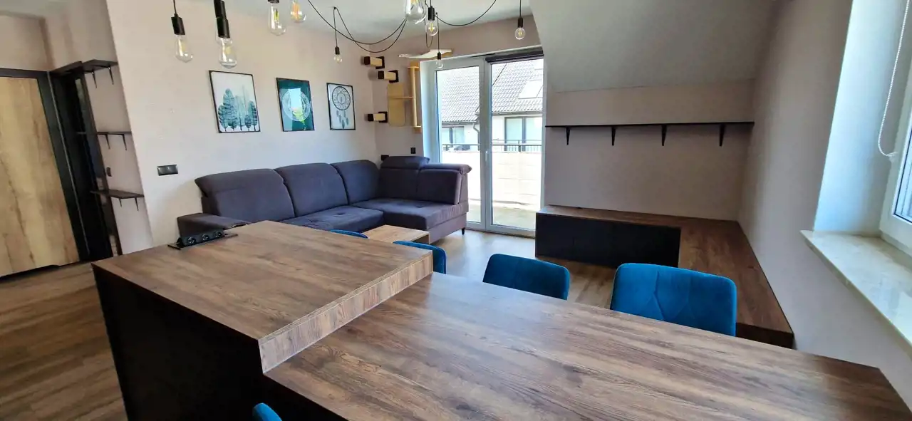 Do sprzedania atrakcyjne, wykończone pod klucz, trzypokojowe mieszkanie zlokalizowane w miejscowości Modlnica. Mieszkanie o pow. użytkowej 71,05m2 + strych około 10-15m2 położone na I piętrze w 2-kondygnacyjnym budynku w zabudowie bliźniaczej. Do wykończenia klatka schodowa, schody na strych oraz strych. Nieruchomość usytuowana na zamkniętym, zagospodarowanym osiedlu z drogą wewnętrzną. Lokal z przynależnym ogródkiem o pow. około 40m2.