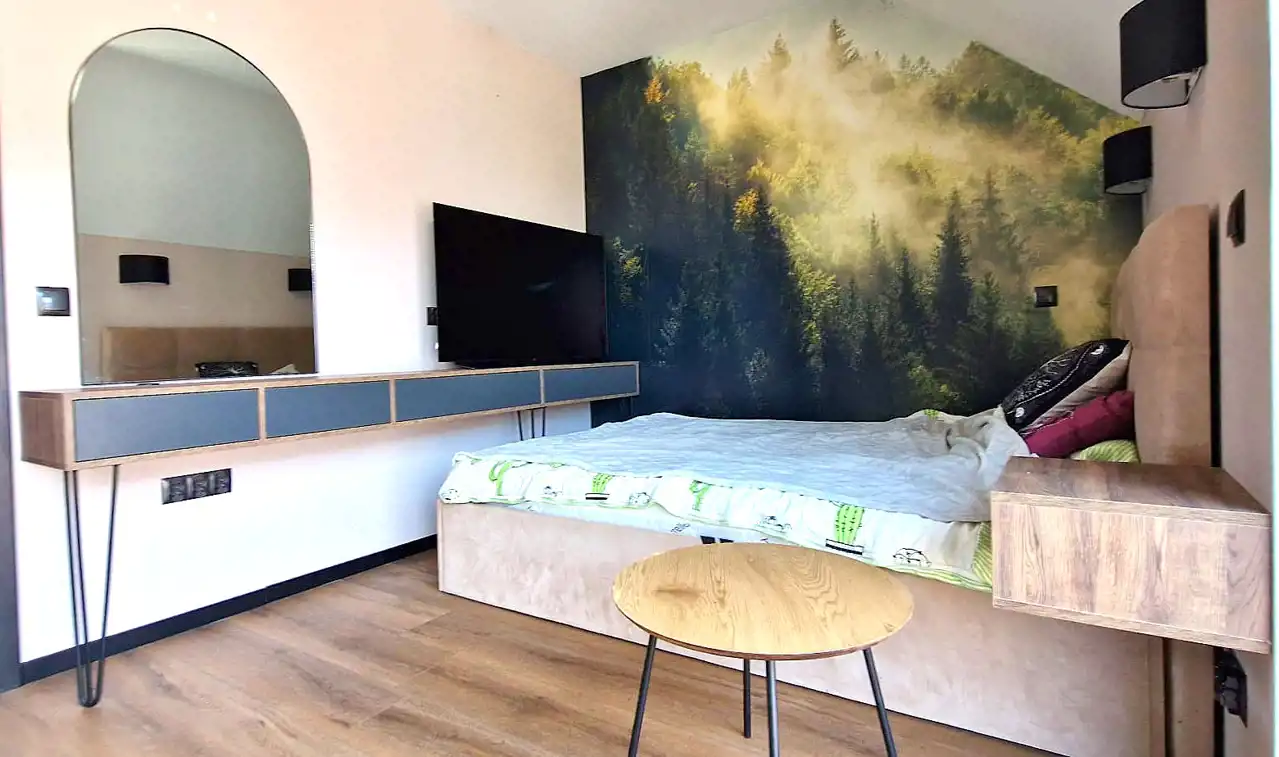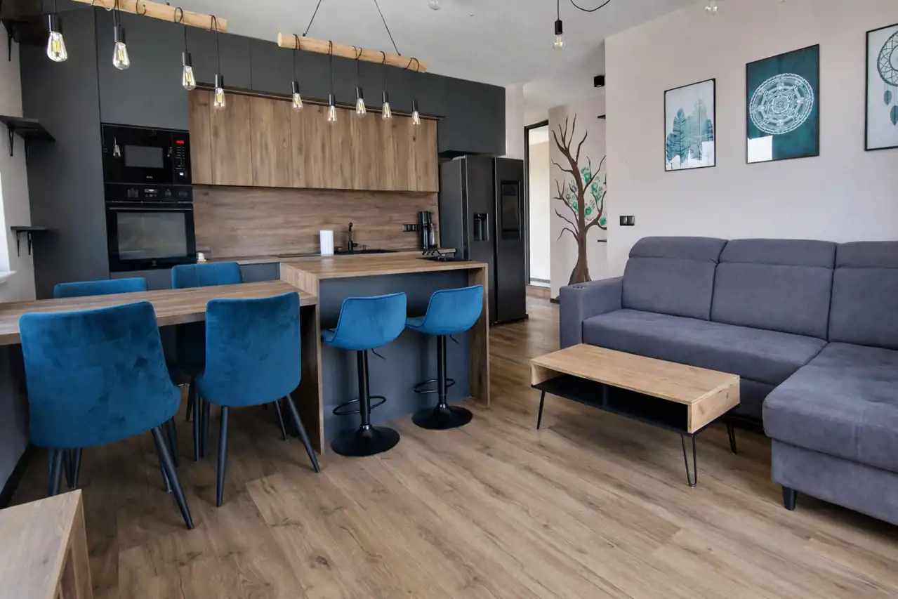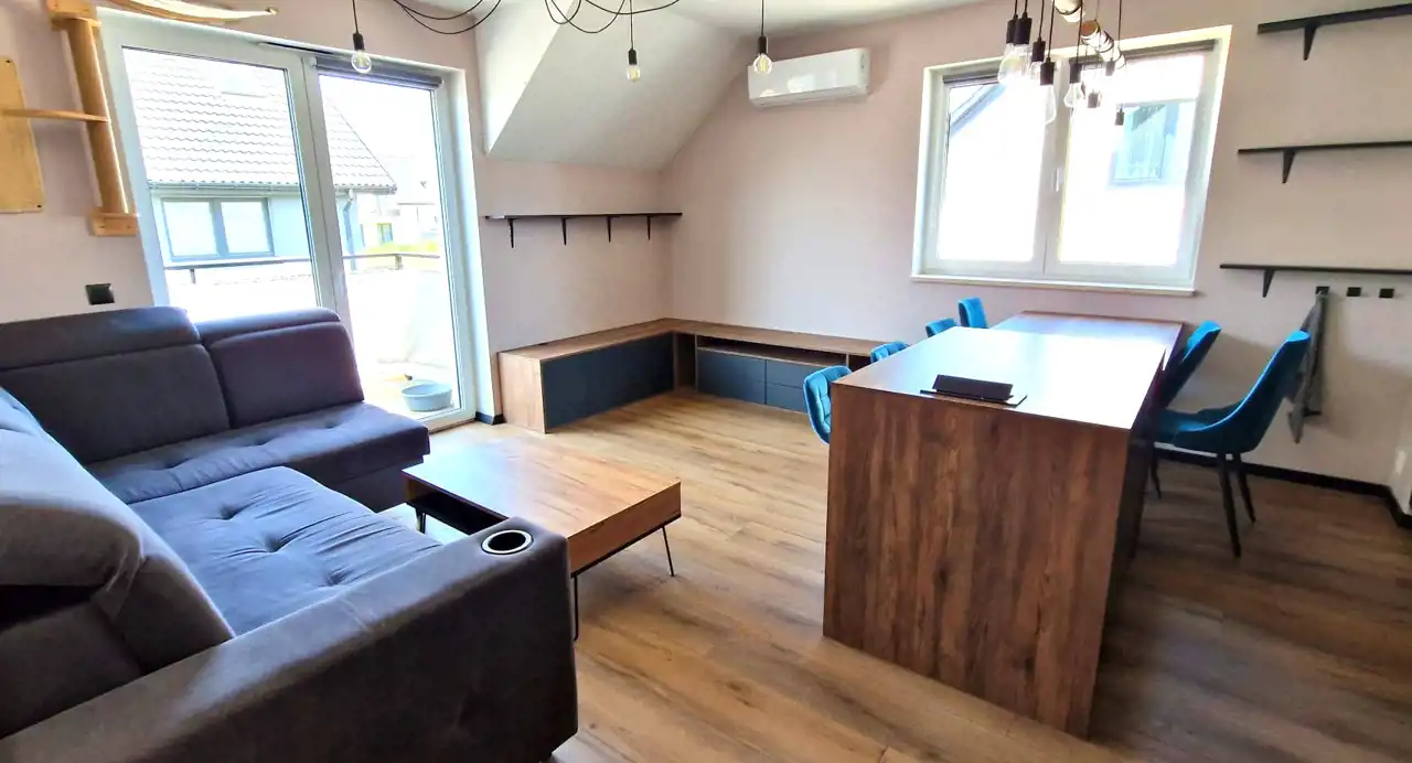 Mieszkanie wybudowane w 2022 roku, sprzedawane z całym umeblowaniem i wyposażeniem w stanie obejmującym: