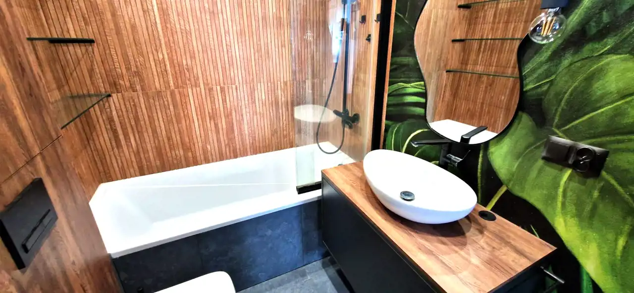 - w łazience płytki,